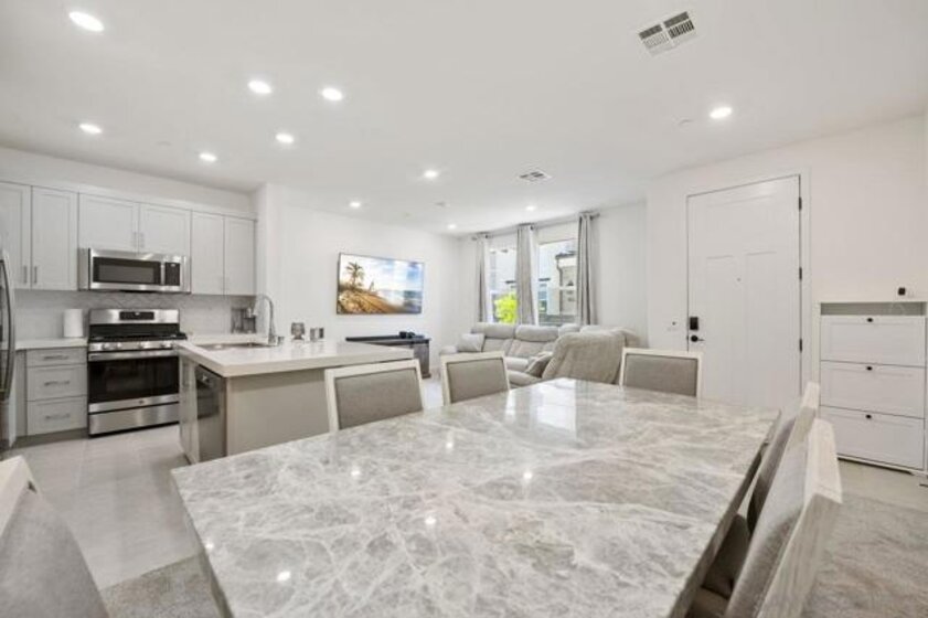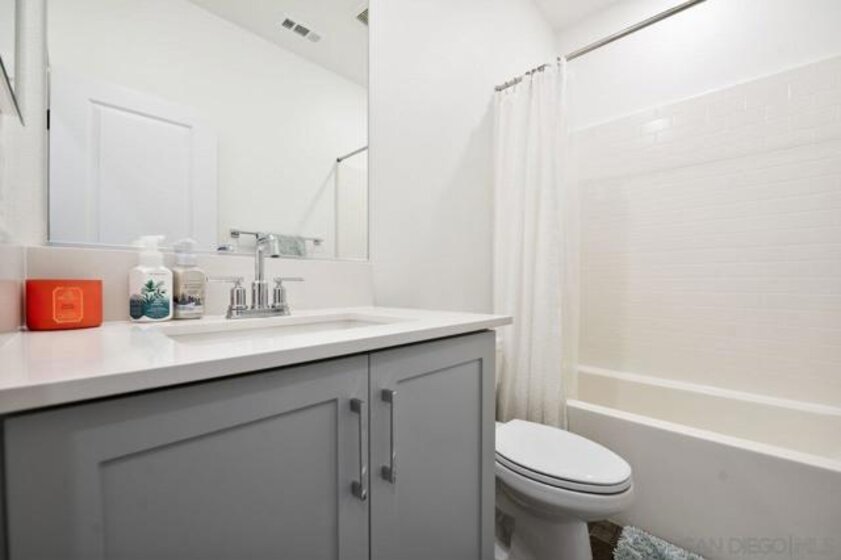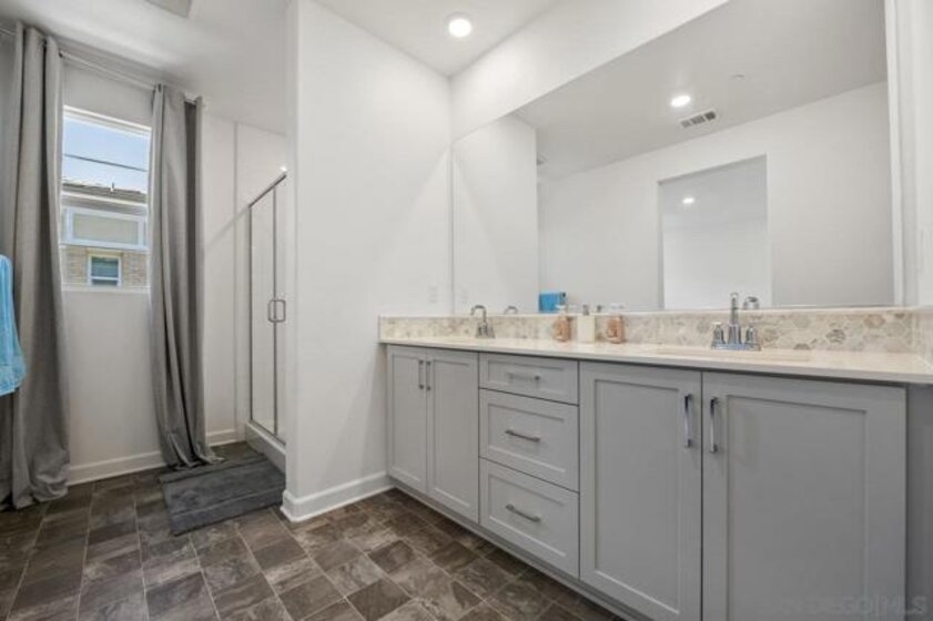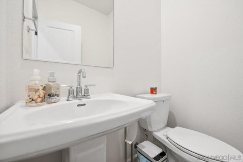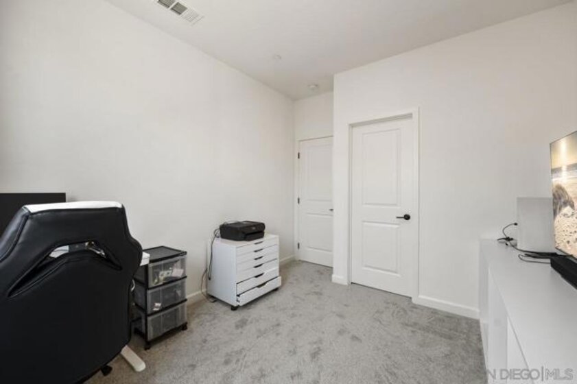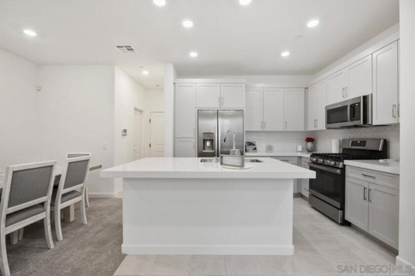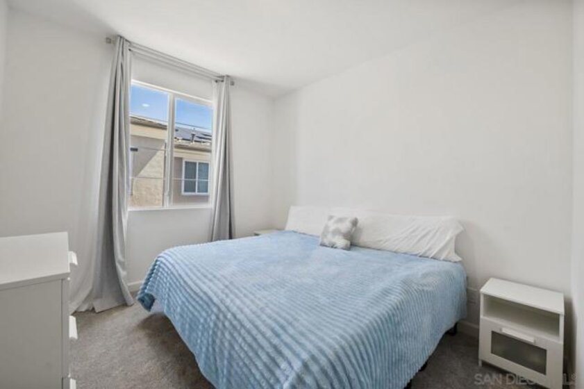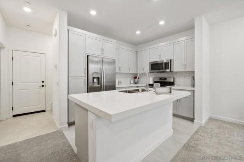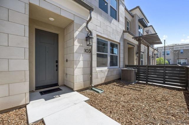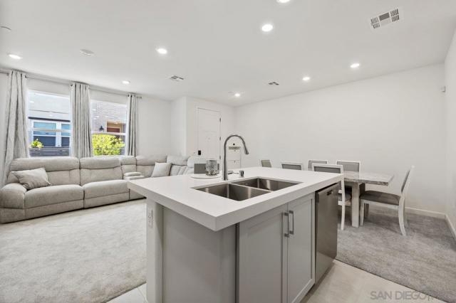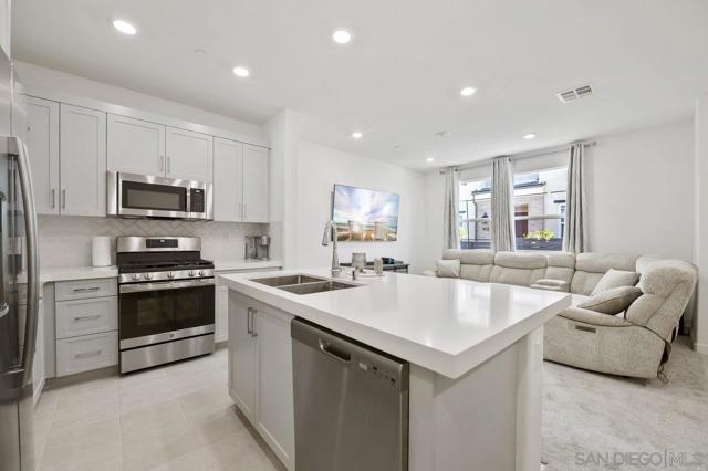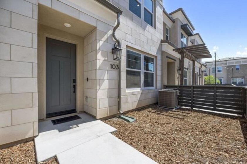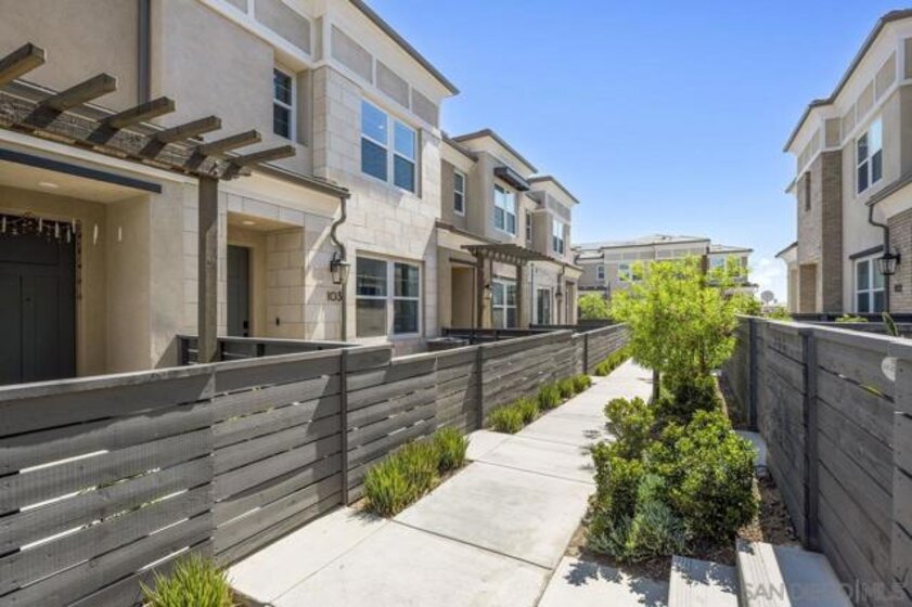 FULLY OWNED SOLAR. Discover this beautifully maintained 3-bedroom, 2.5-bath townhome located in the sought-after Sunrise Amber community of San Marcos. Set in a resort-style, gated neighborhood, this nearly new two-story home offers a perfect blend of comfort, style, and energy efficiency—with fully owned solar panels, a tankless water heater, and an attached two-car garage. The main level showcases a bright open-concept floor plan ideal for both everyday living and entertaining. The chef’s kitchen features shaker cabinets with soft-close drawers, quartz countertops, stainless steel appliances, and a center island with breakfast bar seating. Continue upstairs to a relaxing primary suite with a sitting area, dual vanities, private water closet, and walk-in closet. Two additional bedrooms also feature walk-in closets and share a modern hall bath. A full-size laundry room with washer and dryer adds extra convenience. New carpet throughout, Electric car charger and alarm system. Community amenities include a sparkling pool and spa, BBQ area, two playgrounds, guest parking, and secure gated access. All just minutes from CSU San Marcos, shopping, dining, and major freeways—this home offers the ideal balance of luxury and location. Don’t miss this incredible opportunity! Lowest priced unit in Amber at Sunrise.