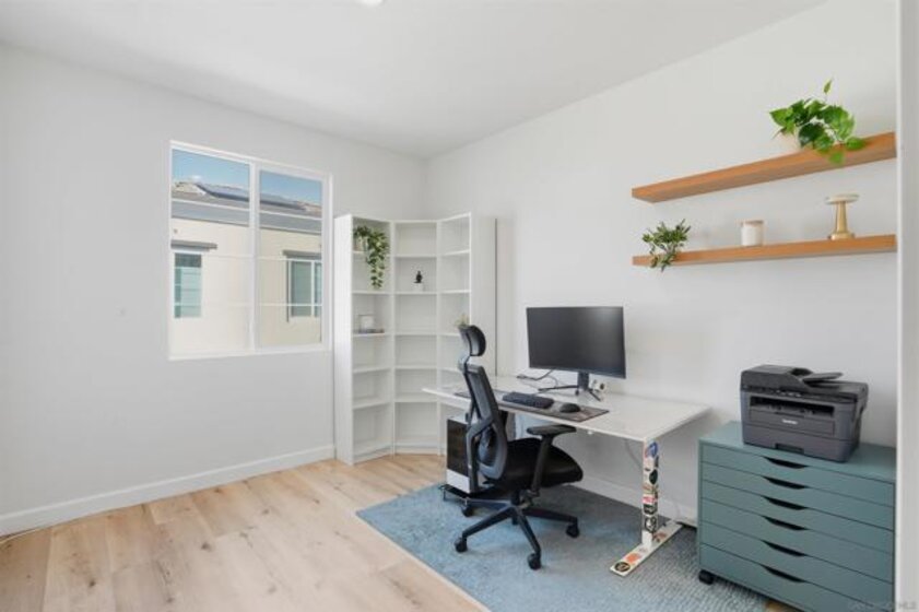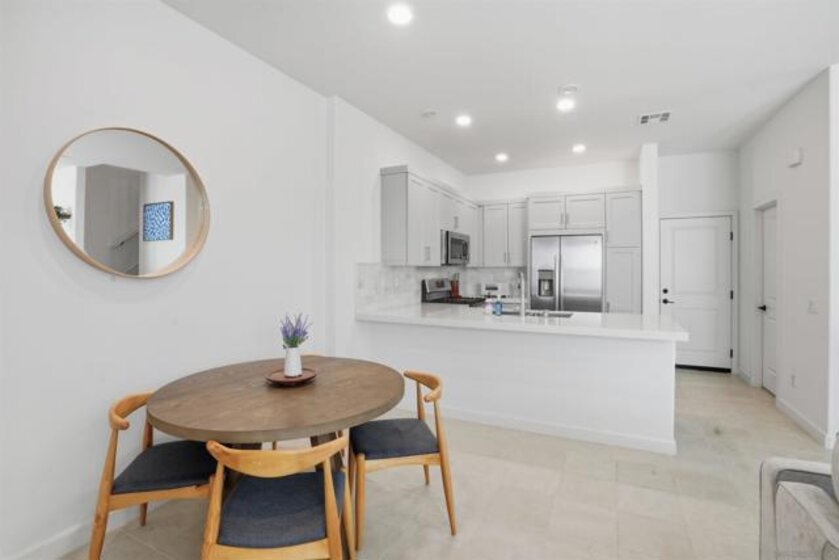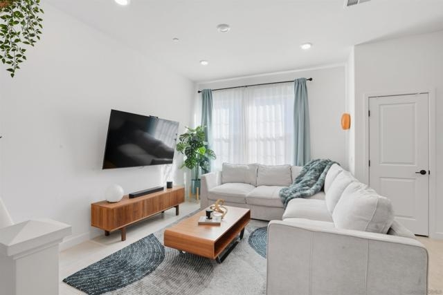 Welcome to 1213 Sunrise View — where modern elegance meets effortless everyday living. Built in 2023, this beautifully designed townhouse-style residence offers nearly 1,500 square feet of refined comfort. The thoughtful floor plan perfectly balances open-concept spaces for connection with private upstairs retreats for rest and renewal. On the main level, the kitchen flows seamlessly into the dining and living areas, creating a bright and airy space ideal for both entertaining and relaxing at home. Expansive windows invite in abundant natural light, enhancing the home’s warm and sophisticated atmosphere. Upstairs, the primary suite provides a peaceful sanctuary, while the additional bedrooms offer versatility for family, guests, or a home office. New luxury vinyl plank flooring extends from the staircase throughout the upper level, adding a touch of style and continuity. Every detail has been considered for a modern, efficient lifestyle — owned solar panels, central A/C, low-maintenance turf, and a pre-installed EV charging outlet make this home as practical as it is beautiful. Located within a secure, gated community featuring a pool and playground, this residence also offers the convenience of quick access to Highway 78 and proximity to the best of North County — from Costco and Mission Hills to the beach and San Diego Safari Park. 1213 Sunrise View isn’t just a newer home — it’s your modern sanctuary in the heart of San Marcos.