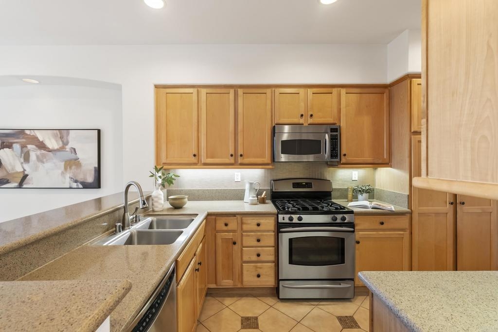 Highly popular end unit townhome overlooking the mountains & city lights in the WestRidge gated community of picturesque San Elijo Hills. This open-concept floor plan features 1,316 square feet of living space with 3 bedrooms, 2.5 bathrooms & a spacious backyard. Radiating with natural, light this newly carpeted & freshly painted property offers a large living room with gas fireplace, hardwood flooring, kitchen with stainless appliances, 2 car direct access garage & a generous primary bedroom with en-suite bathroom, walk in closet, soaking tub & private balcony for enjoying your morning coffee. The gated community of WestRidge offers access to the resort style pool, spa & serene water feature in the coveted development of San Elijo Hills that exudes small town charm. Steps away from top-rated San Elijo schools, parks, playgrounds, ball fields, dog park, shops, restaurants, grocery store & access to 18 miles of maintained trails, perfect for outdoor adventures.