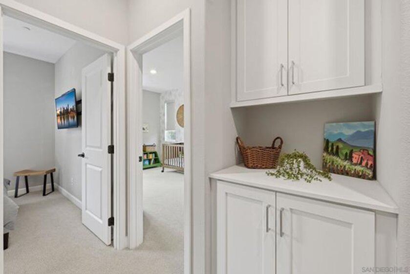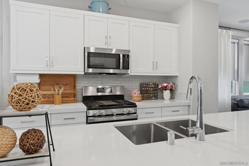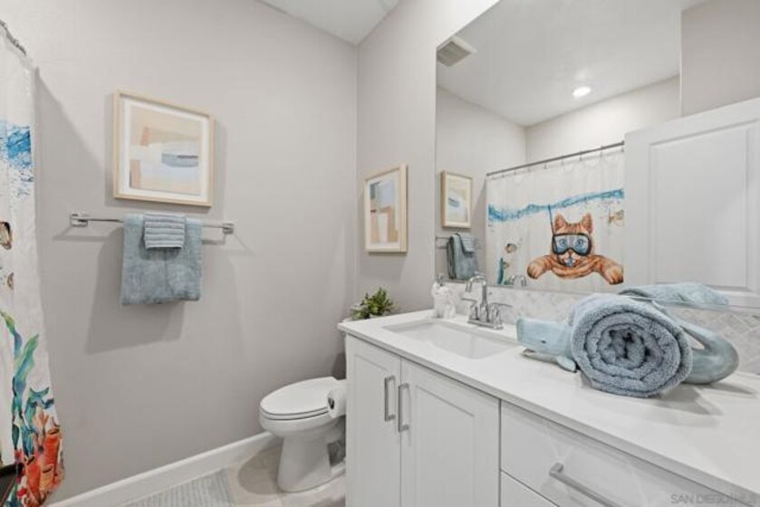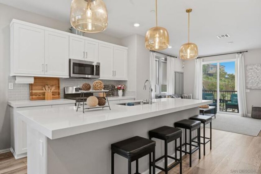 Welcome to a true San Marcos gem—an exceptional 2023 build-model home-end unit, that effortlessly blends luxury, comfort, and thoughtful design. Showcasing extensive upgrades and refined designer touches throughout, this stunning three-story condo offers an elevated living experience in a secure, gated community rich with amenities. Step inside through a custom-paved patio or your attached two-car garage and discover a bright, open layout filled with natural light. The heart of the home is a sprawling gourmet kitchen, featuring a gas range, sleek quartz countertops, custom pull-out drawers, stainless steel appliances and an inviting dining area—perfect for both everyday living and entertaining. The main living area extends to a private balcony, creating a seamless indoor-outdoor flow. This magnificent 1934 sq. ft. residence boasts 4 spacious bedrooms and 3.5 beautifully appointed baths, complemented by upgraded Shaw LVP flooring, gorgeous lighting, plush carpeting, Hunter Douglas roller shades and custom curtains throughout. Enjoy resort-style living with access to four tot lots, a sparkling pool and hot tub, bocce ball courts, and the peace of mind of a gated community. Additional highlights include paid solar and a tankless water heater for modern efficiency. This is more than a home—it’s a lifestyle. Don’t miss your opportunity to own this extraordinary property!