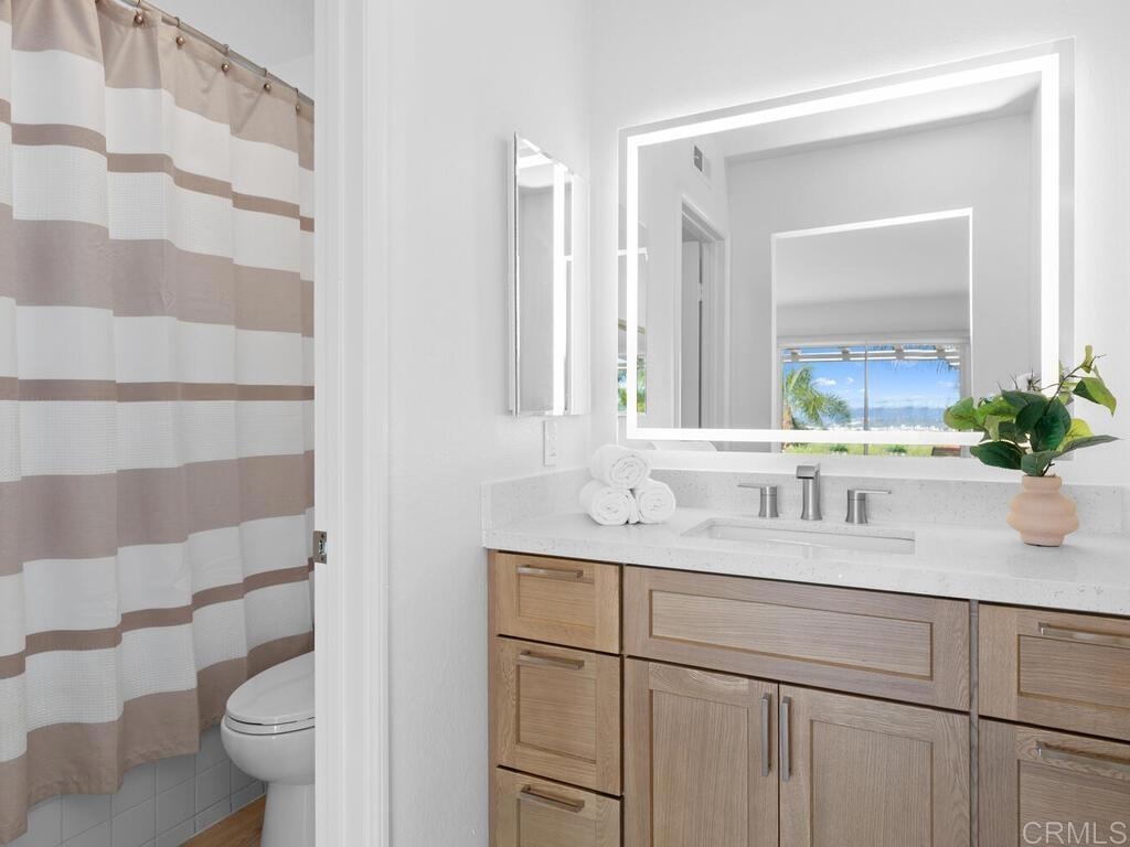 Price range is $945,000-$995,000. Stunning 180° panoramic views – from every room - of Lake San Marcos, Lake San Marcos Golf Course, sunrises and sunsets, the city of San Marcos, Twin Oaks Valley, Cal State San Marcos, and surrounding hills highlight this light, bright, airy condo in The Colony (HOA). • 2 bedrooms | 2 baths | 1,383 sq ft • Single-level, ground-floor, end unit in a triplex (only one shared wall), on a quiet, cul-de-sac street • Attached 2-car garage • Vaulted ceilings • New paint, hardware, and flooring; no carpet • Updated kitchen - new dishwasher; all stainless-steel kitchen appliances convey • Two primary suites, two en-suite baths; kitchen/living/dining centered between the suites • Walk-in closet • Updated bathrooms - new toilets, vanities, countertops, sinks, and mirrors • Expansive back patio - partially fenced - spans the length of the unit, accessible from every room —ideal for indoor/outdoor living and entertaining • Private, gated front courtyard • Laundry hookups in garage and available in-unit • Dedicated home office space • Quiet community with ample guest parking nearby • Community clubhouse a short walk away • Solvent HOA – amenities include 24-hr security, lake+lodge privileges, groundskeeping, pest control • Pet-friendly community • Enjoy daily ocean/coastal breezes • Convenient to shopping, schools, and Hwy 78 (close—without the noise)
