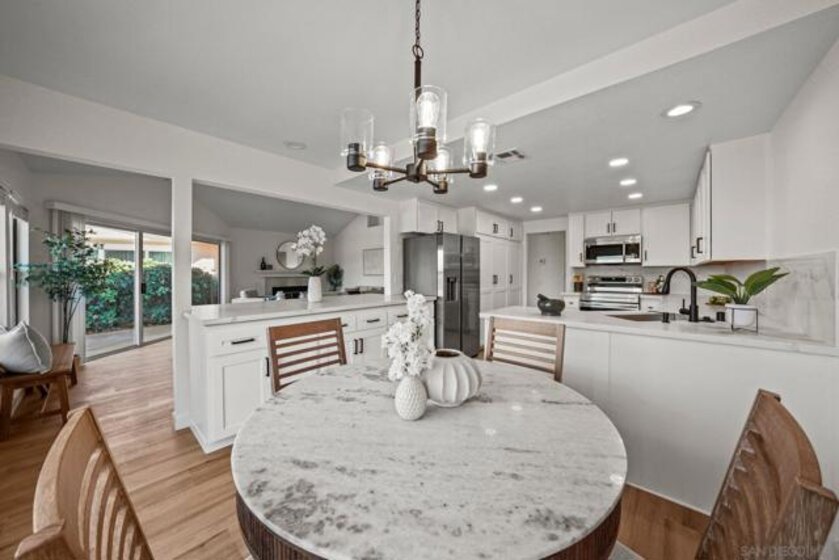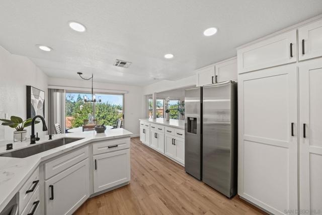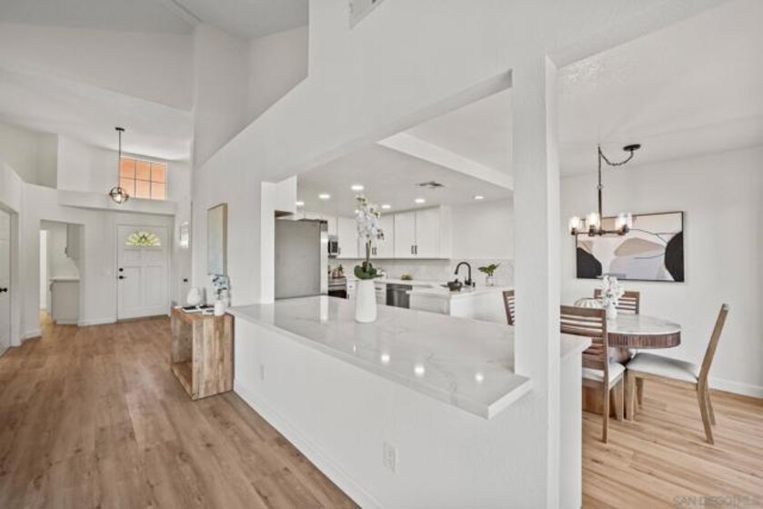 Completely remodeled Lake San Marcos townhome located in the The Colony. Updated throughout with new LVP flooring, renovated kitchen and bathrooms, designer fixtures, and much more. The spacious and well designed floor plan includes vaulted ceilings and a fireplace. Enjoy elevated views of the mountains in the distance, part of the golf course, and surrounding area from your private patio area. This property offers a peaceful setting with easy access to resort-style amenities. The HOA includes membership to the Lake and Lodge, with access to tennis and pickleball courts, two heated pools, clubhouse, billiards, and access to the lake for fishing, kayaking, paddle boarding, boating, and more. Within this vibrant community, you’ll also enjoy The Lakehouse Hotel and Resort, dining options such as Brickman’s Restaurant Bar, lakeside meals at Amalfi, two golf courses, and the peace of mind that comes with 24 hour neighborhood security.