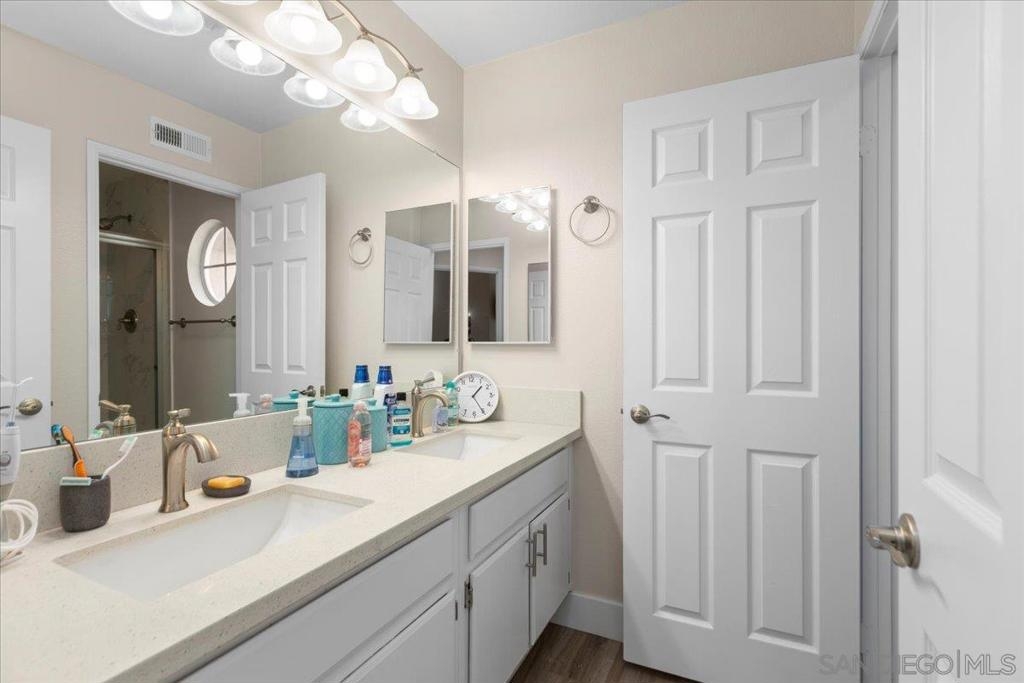 CHIC–COMFORTABLE–SERENE Highly sought-after single-story rarely available in coveted community! Feel instantly at home the moment you park in your spacious garage. The smart layout flows easily through the open living space, ideal for gathering with family & friends. Enjoy cooking & dining in a bright, expansive kitchen built for connection. Both large bedrooms feature en-suite baths for private comfort. Step outside from any room to the wrap-around patio and embrace effortless indoor/outdoor living. FHA & VA OK! 1 STORY-HOME WAS FULLY UPDATED IN 2022 - Priced between $889K & $899K - NOW VACANT MOVE IN READY - 1299 Via Apuesto sits in a tranquil, resort-like enclave within the Lake San Marcos community, where residents enjoy lakeside amenities, clubhouse social spaces, and recreational options like boating, tennis, and swimming. The different homeowner associations in the area maintain sidewalks, lighting, and community infrastructure. Removed from dense commercial corridors, you are still just minutes away from major shopping centers. Dining options in San Marcos are diverse and accessible: from cafés and microbreweries to numerous restaurants. The vibe blends quiet suburban calm with occasional festive restaurants and social energy. For families, the proximity to highly rated schools (Discovery Elementary, San Elijo Middle, San Marcos High) and access to regional highways makes it balanced for both local living and commuting. The Colony at Lake San Marcos is a community that leans toward relaxing, amenity-rich living with a hint of lakeside charm, rather than urban bustle or full rural isolation.
