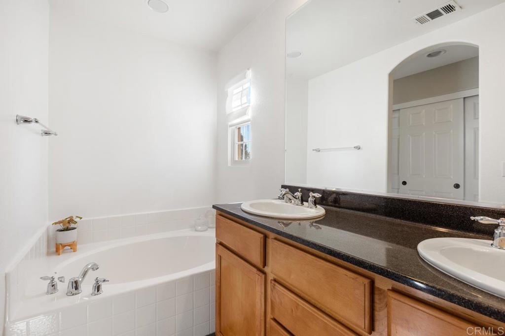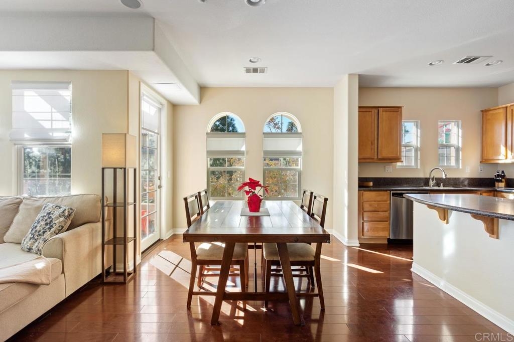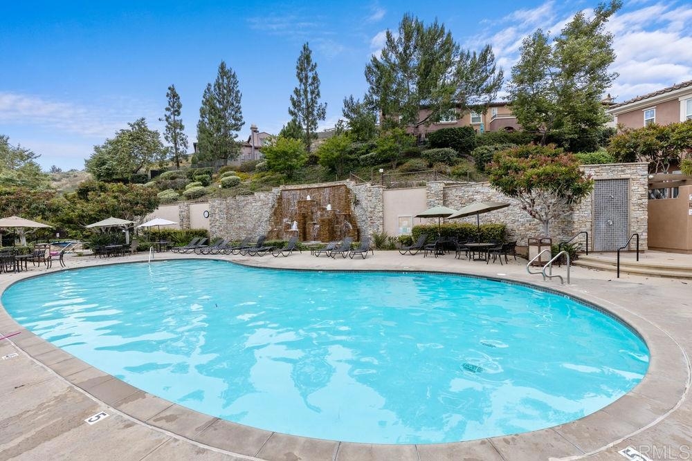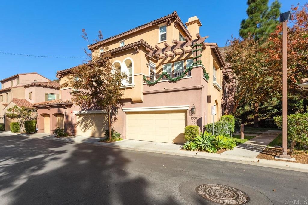 BOM LIGHT & BRIGHT TOWN HOME with south facing windows in the highly desirable gated community of WestRidge in San Elijo Hills. Tucked away in a quiet location with green space outside. Angled building with tree views out the windows. Light filled south facing balcony with guest parking right out front. Beautiful wood floors and neutral paint. Kitchen features an eat at island and stainless appliances. 2 secondary bedrooms are located on the main level as well as the laundry room. The primary bedroom and bath are upstainrs on the third floor tucked away for privacy. 2 car side by side garage, fireplace & AC. Resort style pool/spa complex. Walk to everything! San Elijo Elementary, San Elijo Middle and San Marcos High School. VA approved.