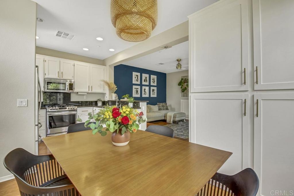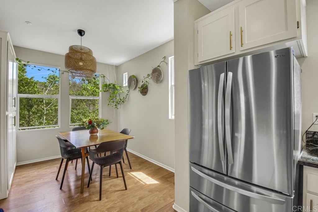 One of the best locations in the Creekside Cottages neighborhood nestled right in the heart of San Elijo Hills! Experience premier townhome living in this tranquil end-unit with lush trees and mountains as your backdrop. This home offers a popular tri-level floor plan with an open concept living space that seamlessly connects the family room, kitchen, dining area, and private balcony. The top level showcases lush views and features the primary bedroom with ensuite bathroom, a spacious secondary bedroom, additional bathroom, and laundry. For added convenience, the attached garage also includes a custom office/study nook. Enjoy the perfect blend of convenience and ease in Creekside Cottages conveniently close proximity to all of the amazing amenities of living in the picturesque San Elijo Hills community! Zoned for sought after San Elijo Elementary, San Elijo Middle, and San Marcos High School. Step outside your door and find yourself within walking distance to everything you need. A short stroll will take you to the local grocery store, an array of charming shops, and a variety of delightful restaurants. For outdoor enthusiasts, scenic trails are right at your doorstep, offering the perfect escape into nature. Creekside Cottages not only provides an idyllic living space but also allows you to enjoy the vibrant community life that San Elijo Hills is known for. This location offers the perfect blend of convenience, community, and prime townhome living!