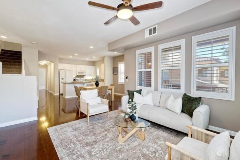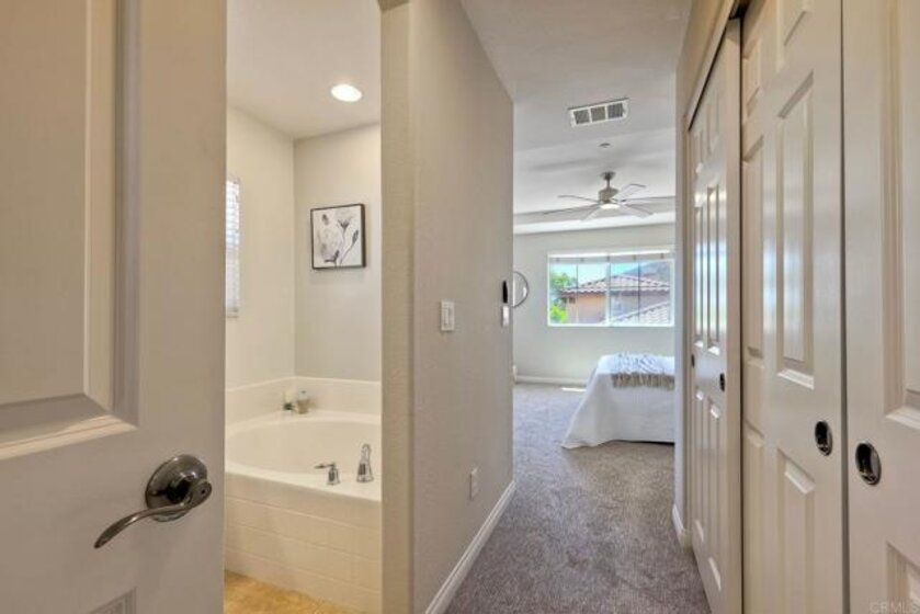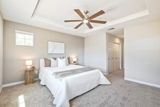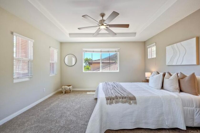 Experience elevated and stylish 3-bedroom, 2-bath, tri-level Westridge townhome nestled in the heart of sought-after San Elijo Hills. The main level features two bedrooms, an open-concept kitchen and living area, and a private deck perfect for enjoying morning coffee or watching sunsets. Upstairs, the spacious third-floor primary suite has coffered ceilings, a spacious bathroom with a soaking tub, and a walk-in closet. Built in 2004, this gated community boasts resort-style amenities, including a pool, spa, and waterfall, which create a tranquil setting. Enjoy all that San Elijo Hills has to offer: a vibrant, award-winning town center, top-rated schools, 18 miles of scenic trails, expansive parks, and breathtaking views from the ocean to the mountains—including the iconic Double Peak Park. Don’t miss your opportunity to live the best of Southern California’s coastal-meets-hillside lifestyle.