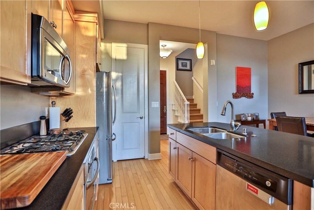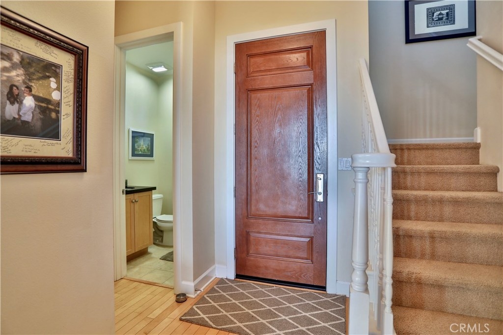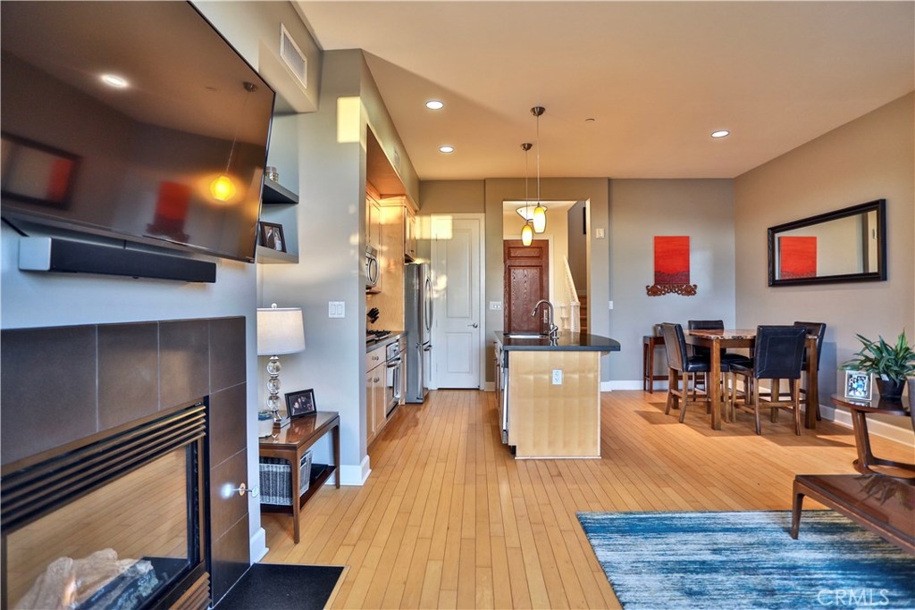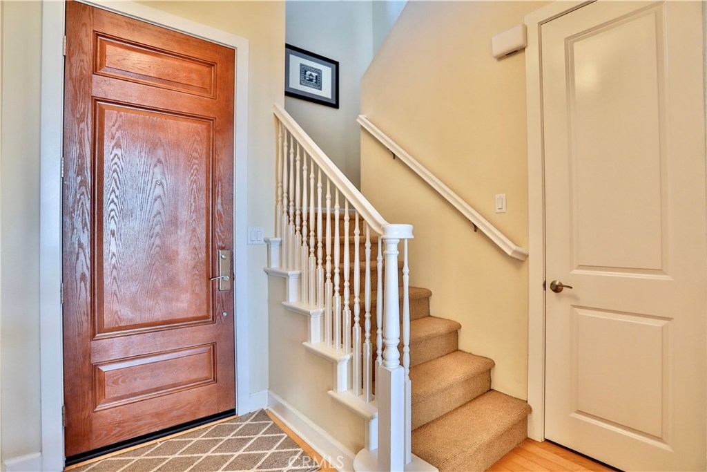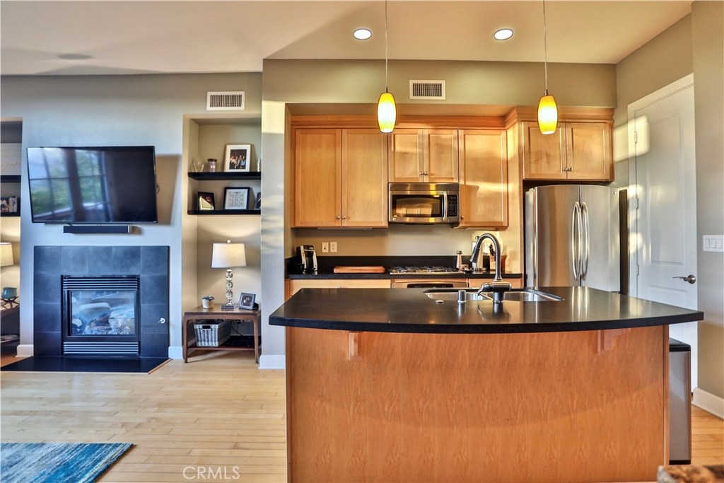 Rarely available 2 bdr. condo at MarketWalk! Centrally located at the heart of San Elijo town center, a short walk downstairs to dining, shopping, the park, and other amenities. Residence features include stone counter tops, stainless steel appliances, hardwood flooring, upgraded designer carpeting, and Central Air and Heat. The main floor living area offers an open layout, gourmet kitchen w/spacious island, dining and living room with elegant french doors exiting to a private balcony affording a view to some beautiful sunsets. The upper level features a master suite and guest bdr with full bath and balcony. There is also the added convenience of an upstairs washer and dryer area. This is a unique property in an exceptional location. Come see it today!
