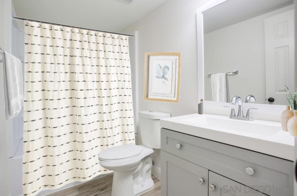 Welcome home to this newly upgraded San Marcos condo! This gorgeous 2-story unit includes 2 bedrooms, 1.5 bathrooms, 1-car garage, and truly lives like a detached home. Upon entering, you are greeted by a modern color palette used in the brand-new flooring and paint that flows throughout the entire home. The kitchen boasts crisp new white cabinetry, sleek quartz countertops, and all new appliances! A large kitchen counter opens up to the spacious living and dining area. Conveniently outfitted with a first-floor powder bath and a private patio, this condo has great options for entertaining. Walk up the plush stairs to enjoy generous size rooms equipped with natural lighting and the ease of ceiling fans. Also located on the second story is a beautifully renovated bathroom, complete with a stylish vanity. Not typical of all condos, this home includes great closet and cabinet space, a separate laundry room, 1 car garage and an additional assigned parking spot. Located in the Lake Park Terrace complex, take advantage of this home's proximity to acclaimed public, charter, and private schools! Minutes away from delicious restaurants, shopping at the Grand Plaza, and Cal State San Marcos, with easy access to freeways. HOA covers many desirable amenities including well-maintained pool, spa, clubhouse, playground, fitness center, water, and trash removal. Complex Features: ,,,,, Sewer: Public Sewer