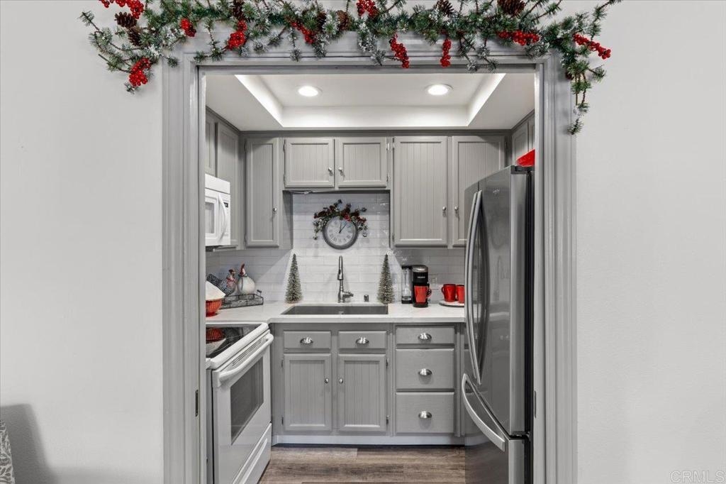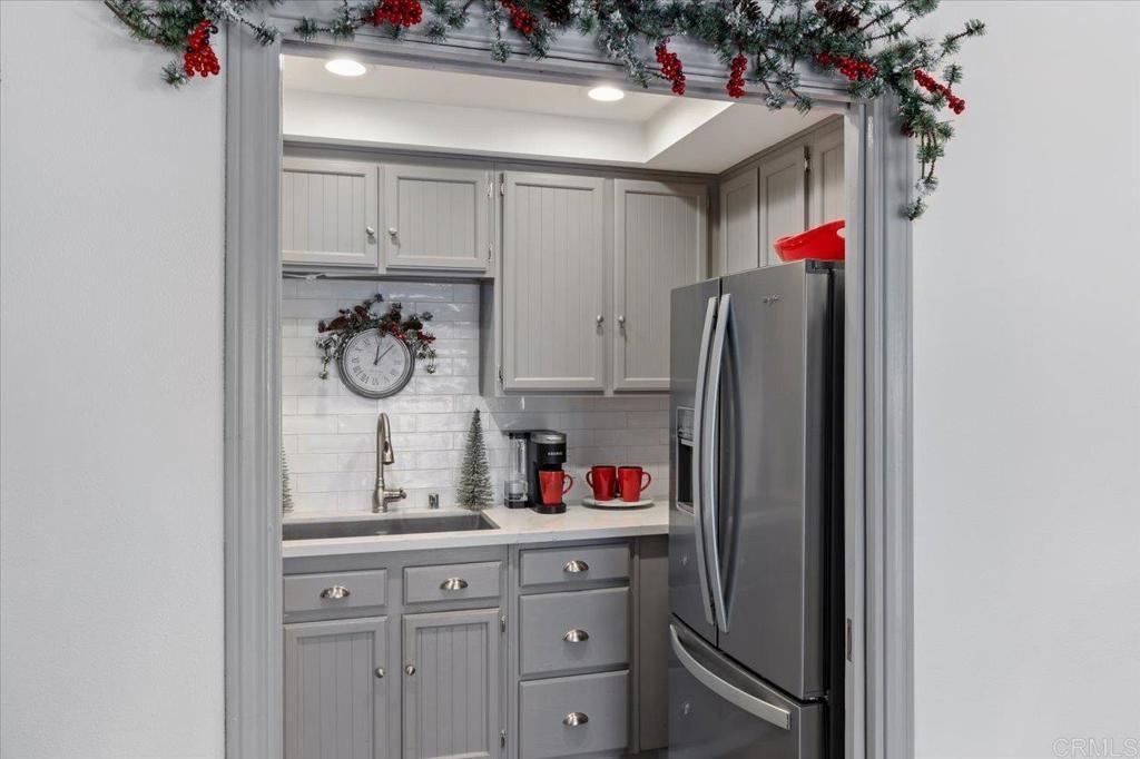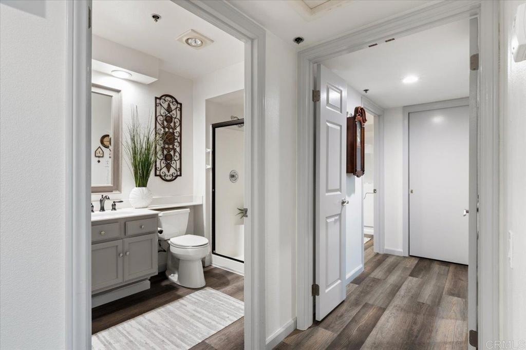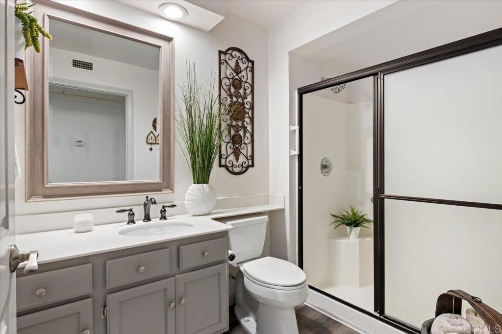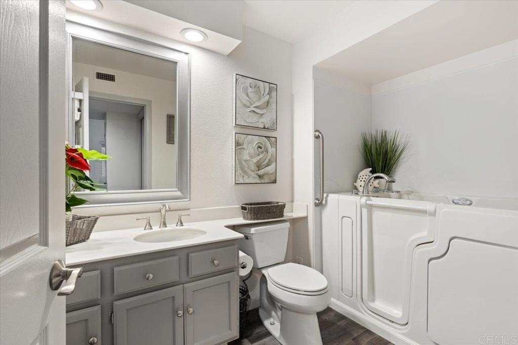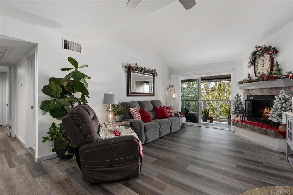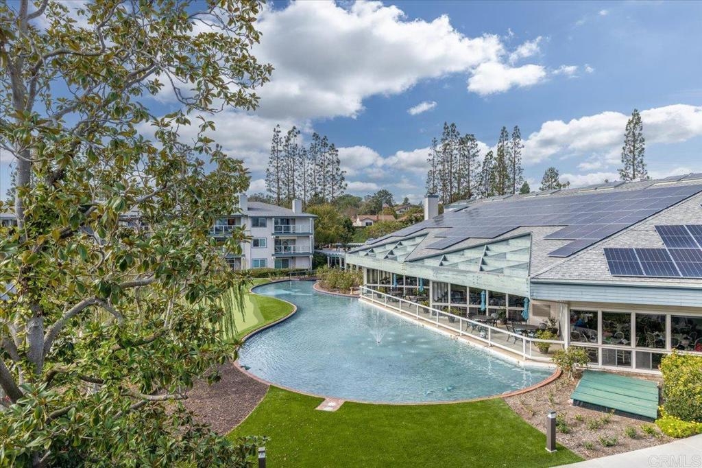 Welcome in to this gorgeous, immaculate and BEAUTIFULLY UPDATED 3rd-FLOOR, 2-bedroom, 2-full bath, END-UNIT condo, with direct VIEWS of the fountain and water feature at the beautiful Chateau Lake San Marcos! This 962 sf Charmant floorplan features vaulted ceilings over wood-look, luxury vinyl plank flooring and gas fireplace. Enter the kitchen through unique, sliding, pocket French doors - !!! - and take in the custom cabinets with bonus deep drawers for more storage, quartzite countertops, subway tile backsplash and newer appliances. The bathrooms offer your choice of a low-step shower in one or the new Safe-step walk-in tub in the other! All the updates here are just two to four years old, including a two-year-old AC system, Milgard dual-pane windows and sliding glass door. So much VALUE here! From the very private balcony, enjoy listening to the peaceful splash of the fountain and gazing out to the large water feature, manicured landscaping and dining room. The Chateau at Lake San Marcos is independent living at its best, offering exceptional services with their caring staff, beautifully maintained grounds and gourmet meal dining. Monthly fee (for one resident) includes: one meal credit per day, all-inclusive transportation, every-other-week housekeeping, linen service, water, trash, free scheduled transportation, concierge assistance, and access to all Lake San Marcos Community Association clubs and events. Monthly $3,033 HOA fee is based upon one person living in the home and with a second resident it would be $3,898 per month. Participate in coordinated activities and the resident-controlled homeowners association, as desired. Complex is gated and has nighttime security. Other amenities include: dog park, lap pool/spa (heated year round), fitness center, library and fireplace lounge. Enjoy wonderful neighbors and fun activities in a beautiful community w/restaurants, two golf courses & boat rentals all nearby!