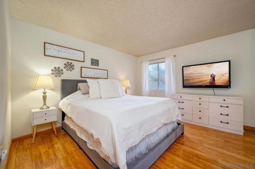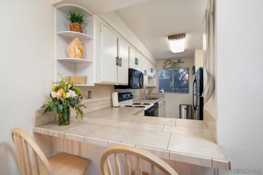 Price improvement! Beautiful 2 bedroom, 1.5 bath townhome in the desirable Lake Park Terrace community of San Marcos. This home has mountain views and is in an incredible location near Las Posas Road, Grand Plaza Shopping Center, the 78, Bradley Park (amazing 4th of July fireworks), restaurants and more. Offering 921 square feet of open and bright living space, this well-maintained home is ideally situated near it all! The inviting main living area flows into a clean, light-filled kitchen featuring ample cabinetry with new hardware. Both bedrooms are generously sized, providing comfortable living and flexibility for family members, guests or a home office. A private patio/yard extends your living space outdoors and offers direct access to the spacious detached one-car garage, along with an additional reserved outdoor parking space (another may be purchased via lottery as well). The unit also features a renovated full-sized laundry room for added convenience that is unique to only a few properties in the community. Residents of Lake Park Terrace enjoy a wide range of community amenities, including a pool and spa, clubhouse, playground, gym, green space, tennis courts, basketball court and RV lot. Water and trash are included in the HOA fees as well. This property is located within the San Marcos Unified School District and is just minutes from Cal State San Marcos and Palomar College. With close proximity to shopping, dining, and recreation, as well as easy access to Interstate 15 and Highways 76 and 78, this townhome has it all!