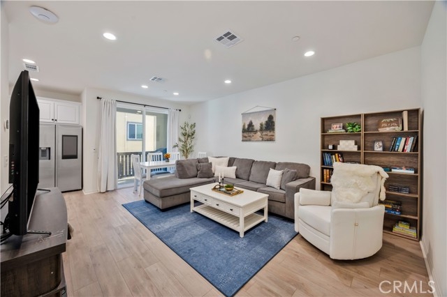 Welcome home to 173 Mission Villas Road, a highly upgraded condo in the Mission Villas community of San Marcos! Built in 2023, this newer construction home features 2 bedrooms and 2.5 bathrooms, with no one above or below. With over $35,000 in upgrades, it offers luxury vinyl plank flooring throughout, dimmable recessed lighting, a water filtration system, and fully owned solar. The main level showcases an open-concept floor plan with a private balcony and a beautifully upgraded kitchen featuring stainless steel appliances, soft-close cabinetry, quartz countertops, a designer backsplash, black hardware and faucet, and a single-basin undermount sink. Off the living room, you’ll find a powder room with a beveled mirror and pedestal sink—perfect for guests. Upstairs, the spacious primary suite offers a generous walk-in closet and an en-suite bathroom with a dual-sink vanity and walk-in shower. The secondary bedroom also includes an en-suite bathroom and a stylish accent wall. A laundry closet with stackable washer and dryer, cabinetry for extra storage, and hanging space is conveniently located on the same level. The attached 2-car garage provides direct access to the home and has been upgraded with epoxy flooring and is wired for electric vehicle charging. The community offers amenities such as a bocce ball court, BBQ area, and playgrounds. This prime location is just minutes from the 78 freeway, CSU San Marcos, the Sprinter station, shopping, dining, and more!