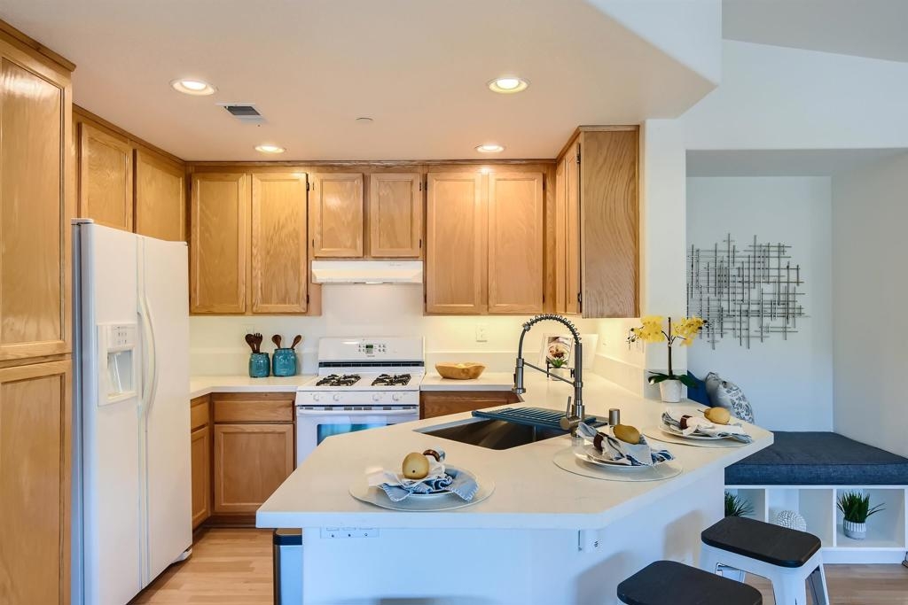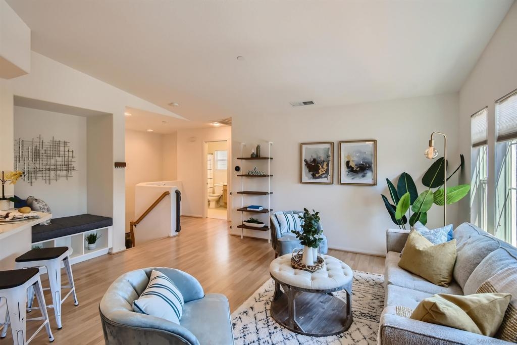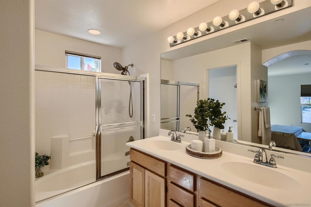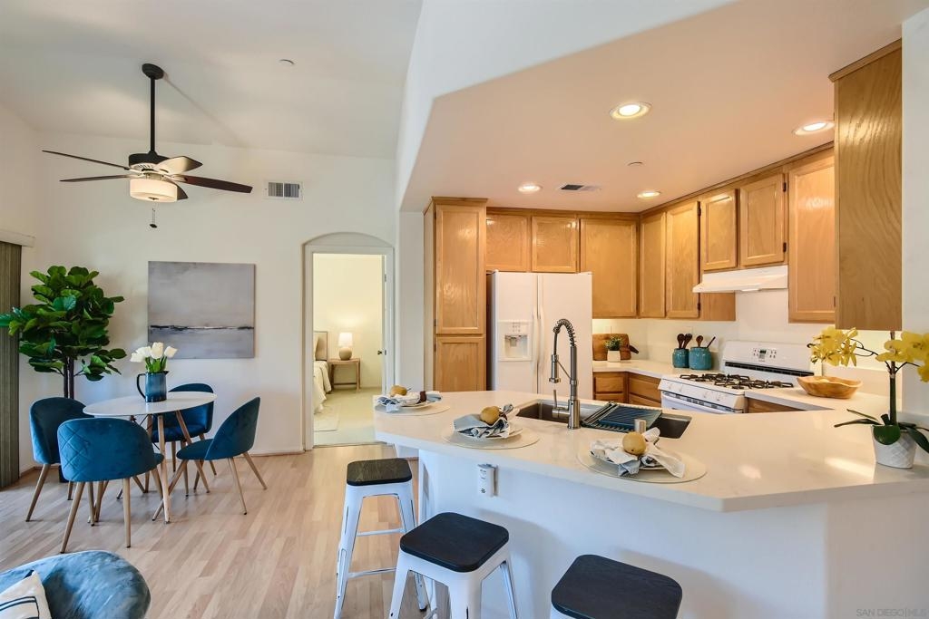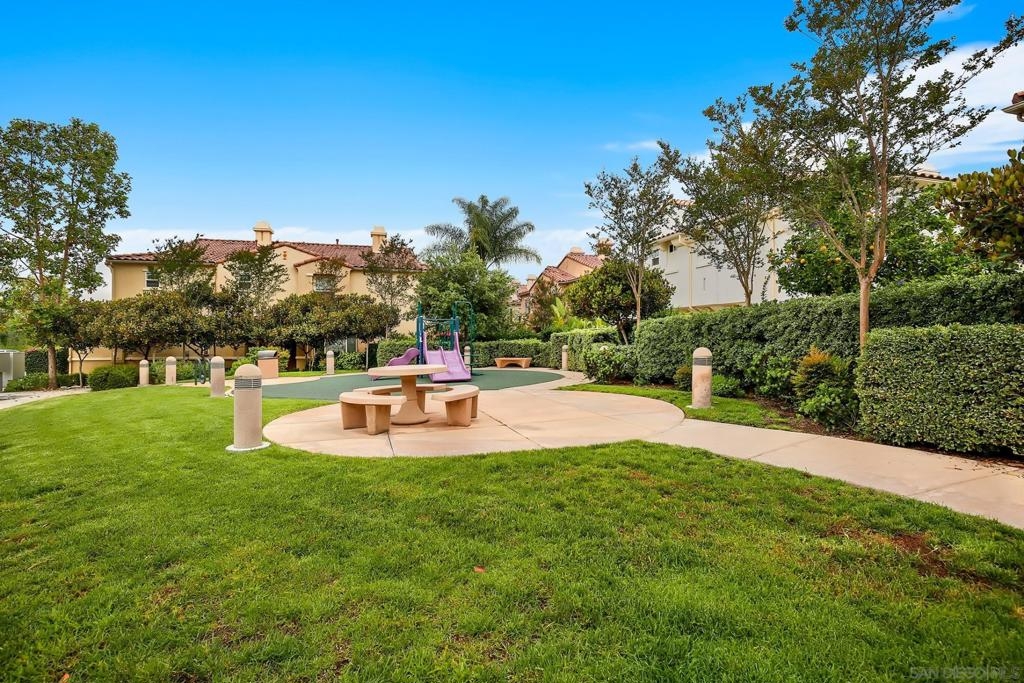 Welcome home! Located within the highly desirable GATED community of Campana at Rancho Coronado, this light and bright END unit townhome features an attached one-car garage & assigned parking space. Recent kitchen renovations include new quartz countertops, deep single basin stainless steel sink, & custom faucet. The counter height was also lowered to create a very convenient dining bar seating space- great for casual/quick meals! Plenty of windows bring in loads of natural light. Outdoor living extends to a private patio just off the living room- enjoy sit down views of surrounding hills. A spacious primary suite offering a walk-in closet and its own ensuite bathroom. The guest bedroom/office is located on the other side of the main living space for privacy and utilizes the second full bath located in the hallway. Space for a full sized clothes washer and dryer in the garage. 220V outlet in garage for Level2 EV vehicle chargers. Great community amenities include a sparkling pool and spa, recreation area, and tot lot. Conveniently located, just minutes away from shopping, dining, parks, great schools, Cal State San Marcos, Palomar College, Highway 78, Interstate 15, plus so much more. FHA and VA approved complex. Don’t let this opportunity pass you by! Sewer: Public Sewer Topography: LL
