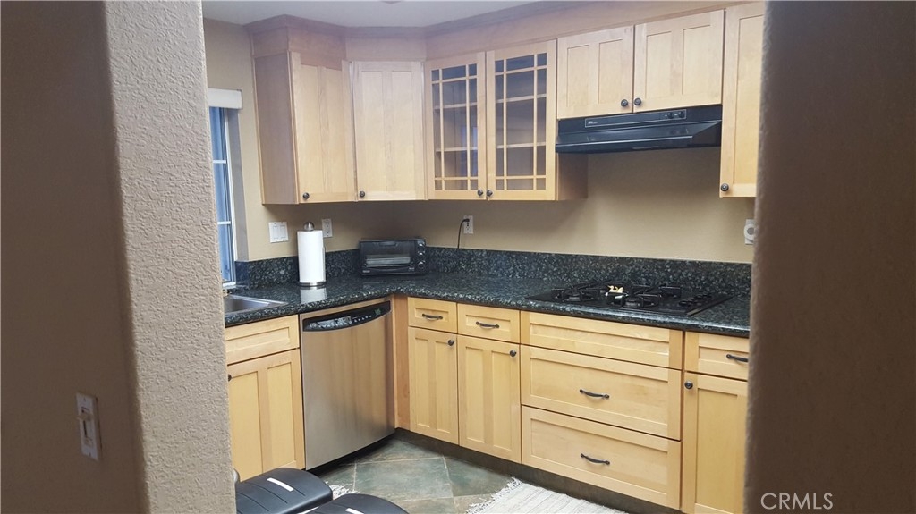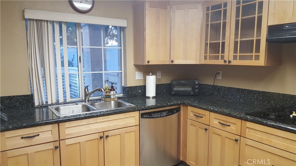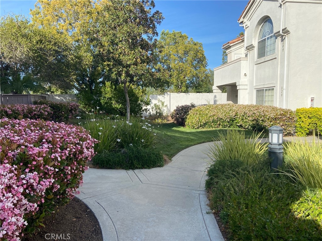 This charming lower level condo is located in Ambiance complex. The open concept floor plan is simply perfect for entertaining. The kitchen includes newer garbage disposal and up-dated stainless-steel appliances and cabinets. The kitchen has a pass-through to the dining room. The dining room features a sliding glass door to access the beautiful patio area which is surrounded with greenery. It is the perfect place to relax during those amazing San Marcos summer nights. There is also a gas lit fireplace located in the living room. The master bedroom and secondary bedroom are separated by the bathroom and laundry room which allows for privacy between both bedrooms. Each bathroom has been upgraded with wood look tile flooring along with newer toilets. The detached one car garage has spacious cabinets for storage. Also included is one dedicated parking spot which allows for plenty of parking. Amenities include pool & spa along with tot lots and beautiful green belts throughout. HOA covers water, sewer, trash pickup, roof, termite, exterior building maintenance, front landscaping and more. Close to shopping center, Costco, schools, hospital, and easy freeway access. This condo is a rare find and truly has everything you could ask for. This is a non-smoking community.
