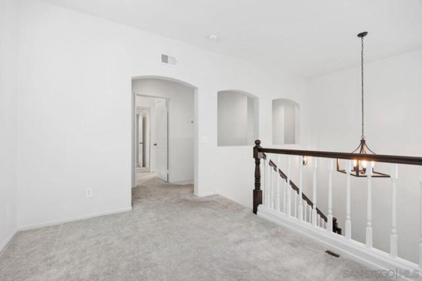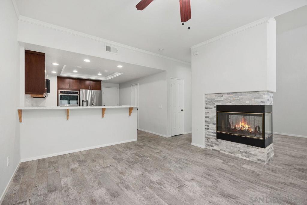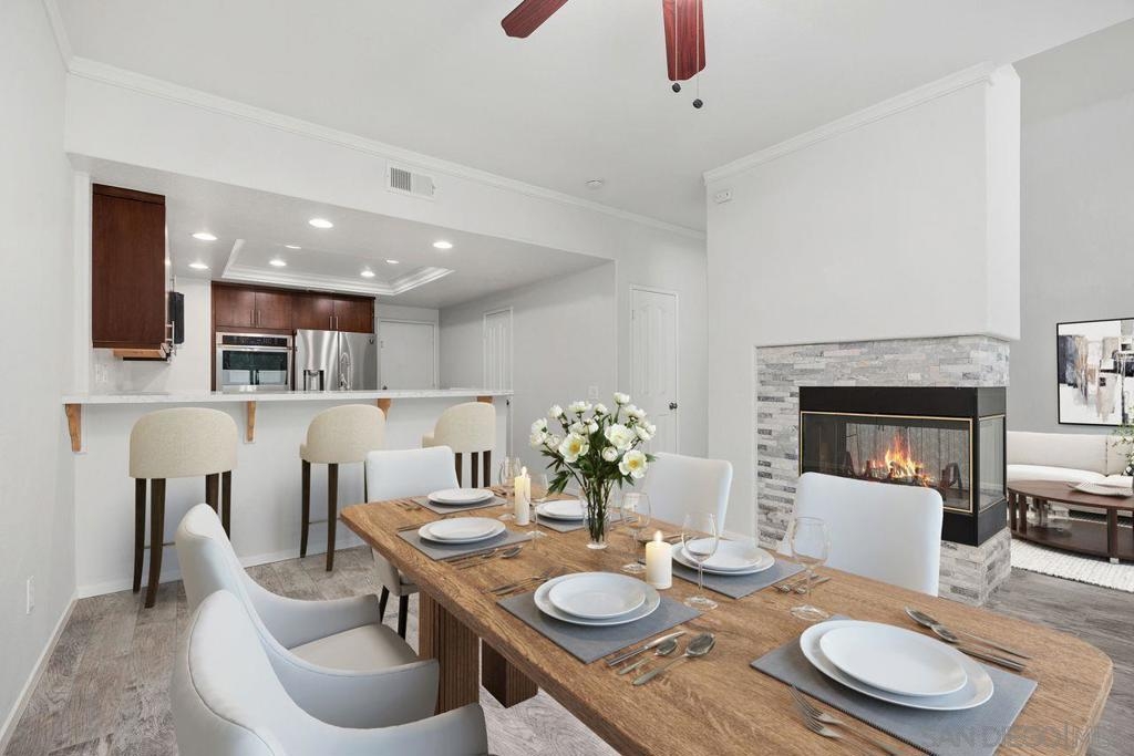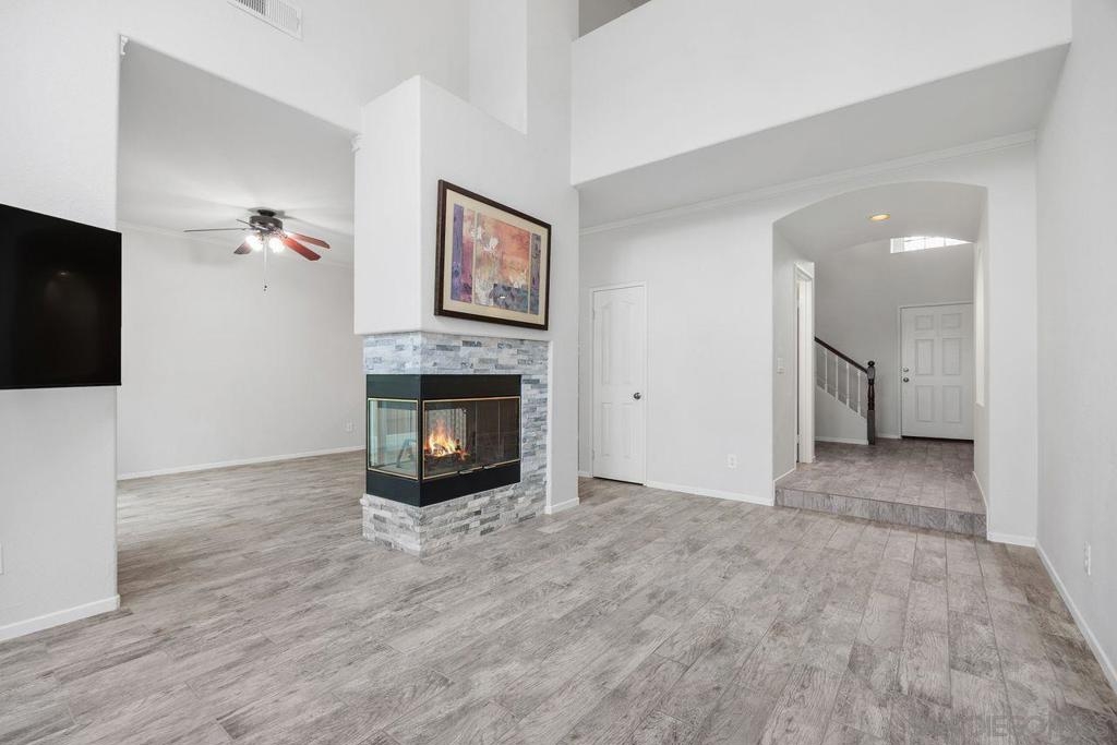 Beautifully upgraded Ambiance townhome offering 3 bedrooms, 2.5 baths, plus a versatile loft across approximately 1,750 square feet. Step inside to soaring vaulted ceilings and a striking two-sided rock fireplace that elegantly connects the living and dining areas, creating a warm and inviting atmosphere.The fully remodeled kitchen is a standout, featuring custom cabinetry, quartz countertops, recessed lighting, stainless steel appliances, double ovens, a gas cooktop, built-in microwave, and a generously sized walk-in pantry.The spacious primary suite boasts vaulted ceilings and a ceiling fan for added comfort. The remodeled primary bathroom includes dual sinks, quartz countertops, and mirrored closet doors.Enjoy outdoor living in the private backyard complete with low-maintenance synthetic turf and pavers—perfect for relaxing or entertaining. Additional highlights include a two-car attached garage and newer heating and air conditioning systems.Residents of this desirable community enjoy access to a pool, spa, and playgrounds, all conveniently located near freeways, shopping, dining, and top-rated schools.