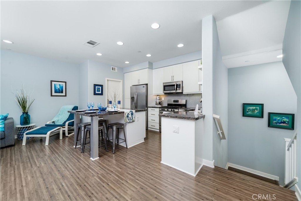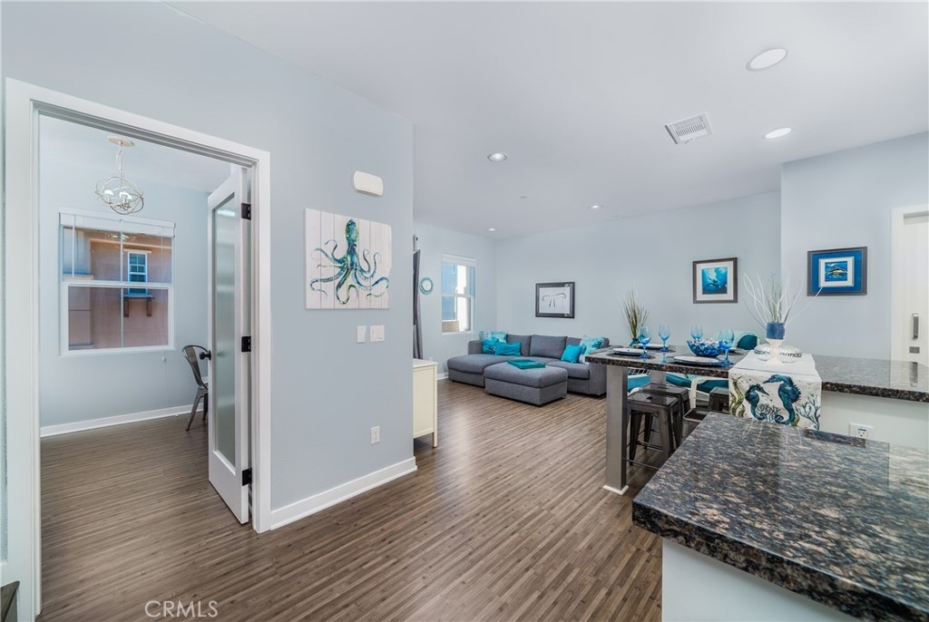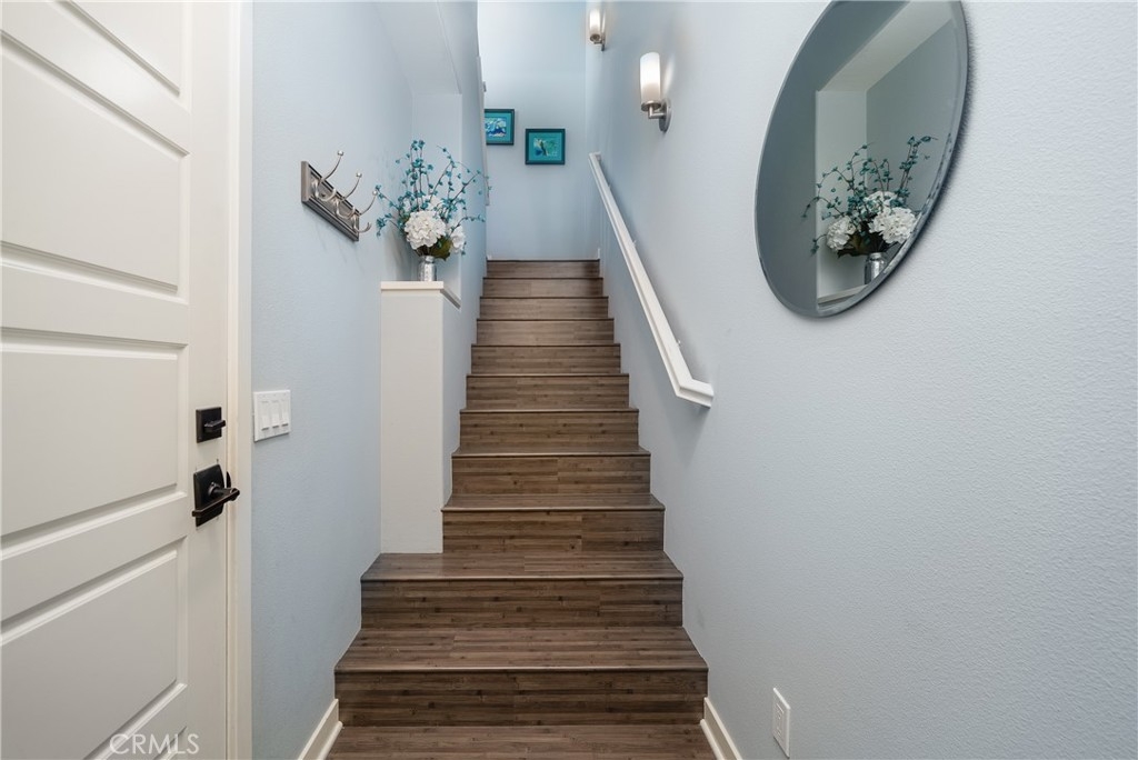 Back on market! Tour this home at bit.ly/Cosmovideo and welcome home to a stunning, move-in ready and immaculate townhome in the popular Solaire community of Old Creek Ranch. This tastefully decorated and beautifully upgraded home is tucked away nicely from San Elijo Road, yet close to plenty of guest parking. This three-story home has its own two-car, side-by-side garage with direct access to the townhome. The laminate wood stairs lead to the second floor where you will love the open concept layout with a lovely kitchen which overflows into the light-drenched family room with private balcony. Full-sized laundry with washer and dryer are located at the base of the stairs in a convenient laundry closet. Though the original owner opted for the bonus room in lieu of a third bedroom, the current owner had the bonus room enclosed with a door and a closet. This would make a great home office or den, or could be used as a third bedroom. The kitchen is wonderful with slab granite counters and center island, stainless steel appliances, and white cabinetry which really “pops” with the model-perfect paint. There’s even a half bath on the second floor. A quick trip up the stairs to the third floor is where you will find the master bedroom, bath with dual sinks and a generous walk-in closet, a secondary guest full bath, and an additional bedroom. Solaire is a very popular neighborhood due to its location right on the edge of where San Marcos and Carlsbad intersect, and children attend top-rated schools. The home was designed with many smart home features for modern convenience. Solaire also has low HOA fees of $277 per month, yet offers so many amenities for residents to enjoy, including a resort-like pool, spa, outdoor seating, natural gas fire pit and BBQ. It’s a great community for commuters, too, whether the trip to work is via the 78 or 5 freeway. San Elijo Hills town square with restaurants, shops and major retail is a mere 1.4 miles, and La Costa Towne Square with restaurants, shops, major retail, Cinepolis and more is just under 2 miles. As a crow flies, you are just under 6 miles from some of Southern California’s most beautiful beaches.