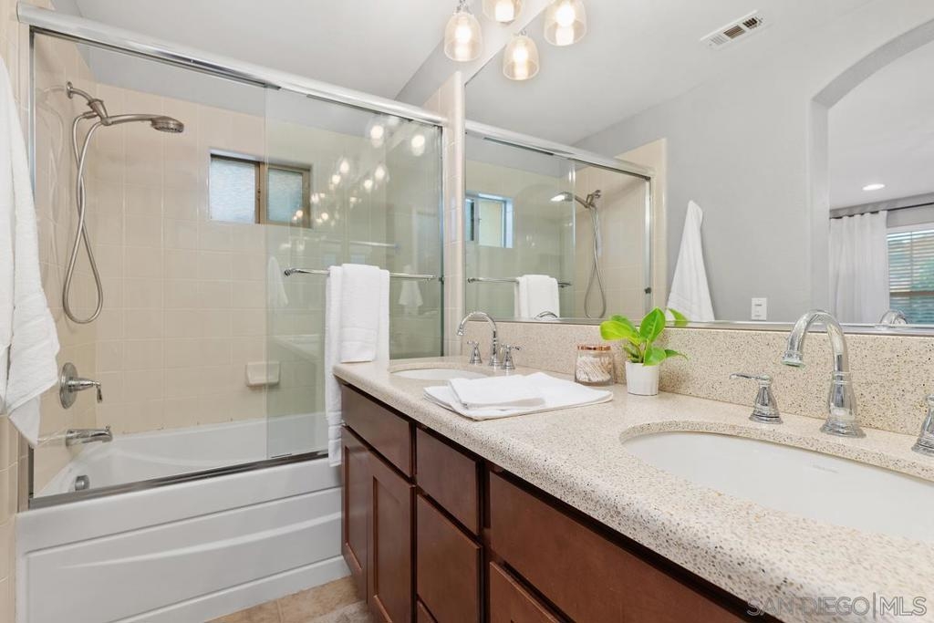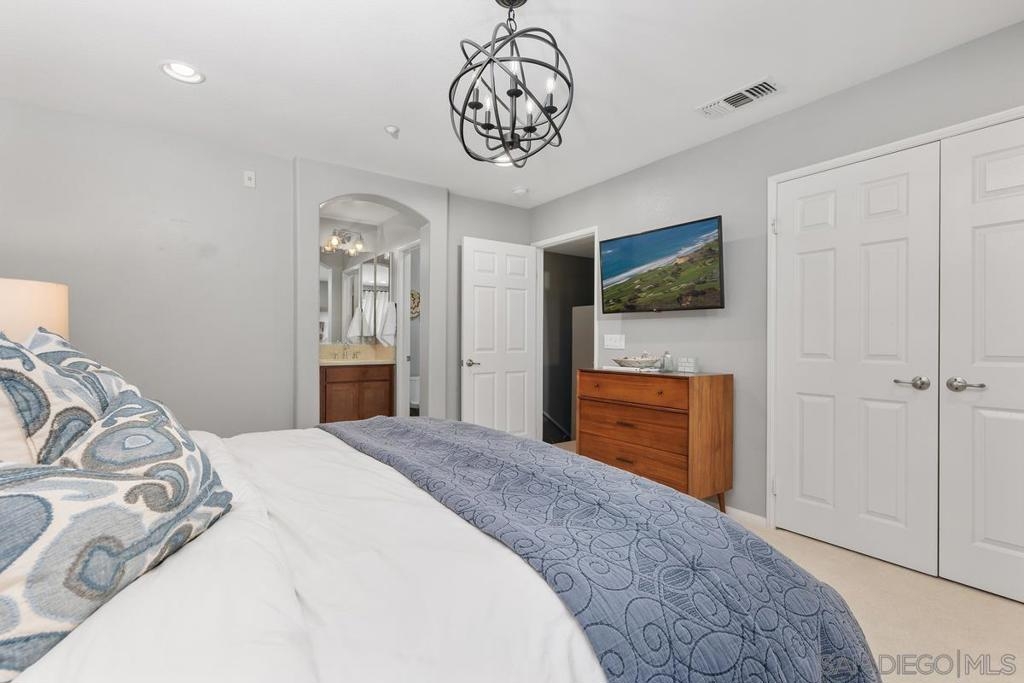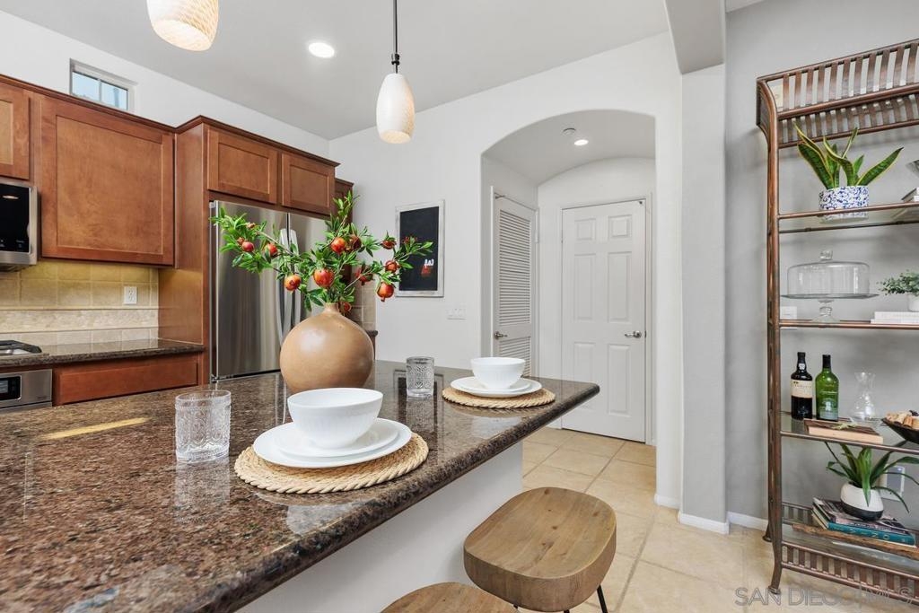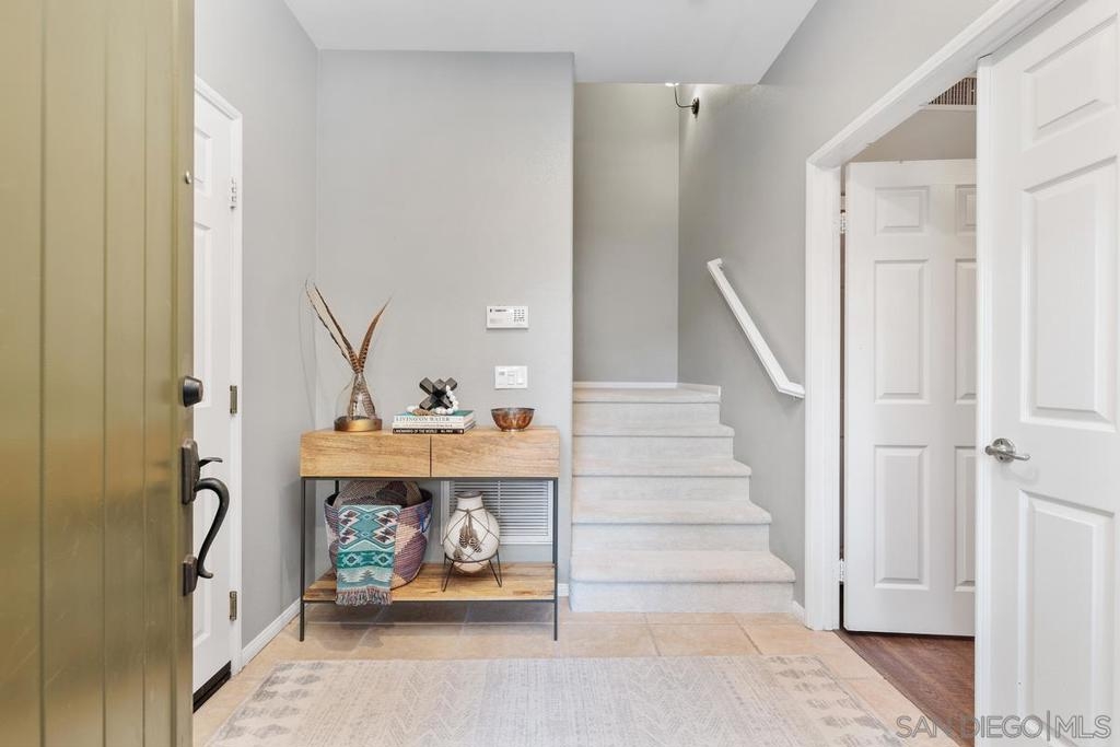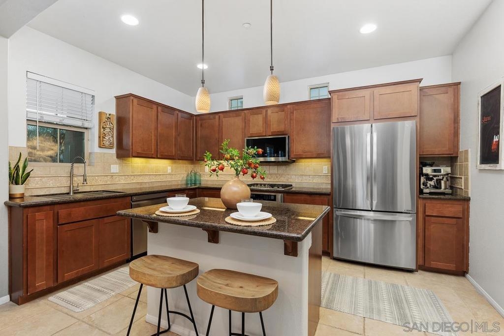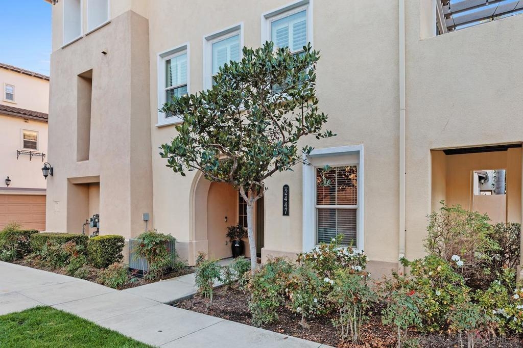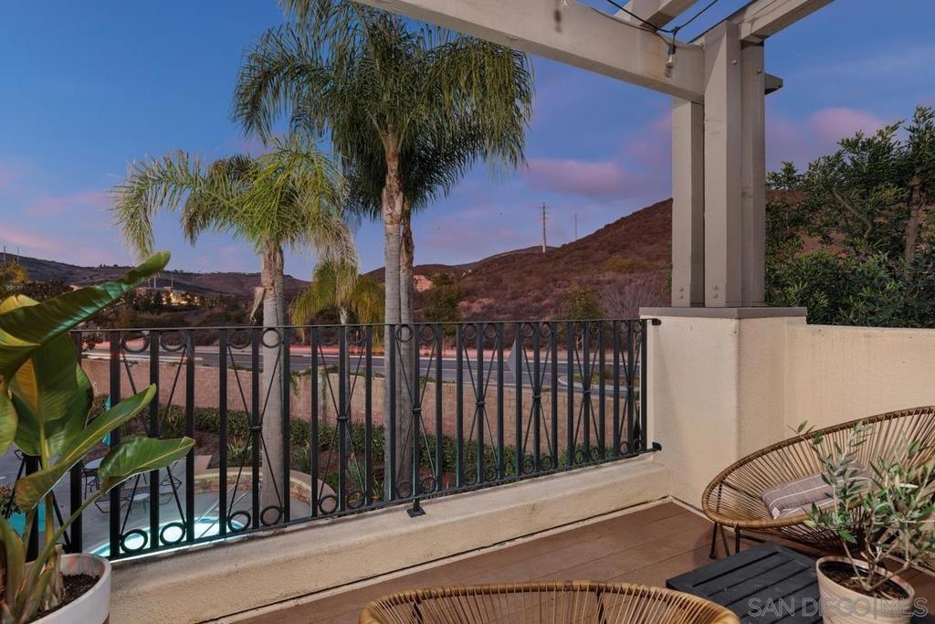 Nestled in the sought-after Larkspur Creek community of Old Creek Ranch, this exceptional 3-bedroom, 3.5-bath end unit townhome offers an unparalleled living experience just moments from Carlsbad. A unique feature of this remarkable property is the full bedroom and bathroom conveniently located on the entry level, providing ultimate flexibility for guests or multi-generational living. The home boasts a prime orientation, with stunning views overlooking the community pool area and distant mountains, creating a picturesque backdrop to daily life. See supplement! Nestled in the sought-after Larkspur Creek community of Old Creek Ranch, this exceptional 3-bedroom, 3.5-bath end unit townhome offers an unparalleled living experience just moments from Carlsbad. A unique feature of this remarkable property is the full bedroom and bathroom conveniently located on the entry level, providing ultimate flexibility for guests or multi-generational living. The home boasts a prime orientation, with stunning views overlooking the community pool area and distant mountains, creating a picturesque backdrop to daily life. Inside, soaring high ceilings and an open floor plan are bathed in natural light, creating an inviting and spacious atmosphere. The recently upgraded kitchen is a true showpiece, featuring a brand-new sink and microwave, granite countertops, a travertine backsplash, and a functional island. Top-tier appliances, including an LG dishwasher and refrigerator, complement the space's modern aesthetic. Thoughtful improvements are evident throughout, with new carpet, LVP flooring and designer light fixtures. The family room, anchored by a cozy fireplace and opening to a private balcony, provides a perfect space for relaxation while offering breathtaking mountain and pool area views. The master suite serves as a luxurious retreat, complete with a spacious walk-in closet and an elegant bathroom featuring dual sinks. Strategically located in a prime area, this townhome provides convenient access to Carlsbad's best amenities, including Alga Norte Park, local shopping, beaches, and LEGOLAND. Served by the excellent San Marcos Unified School District, this property represents the perfect blend of comfort, style, and location.