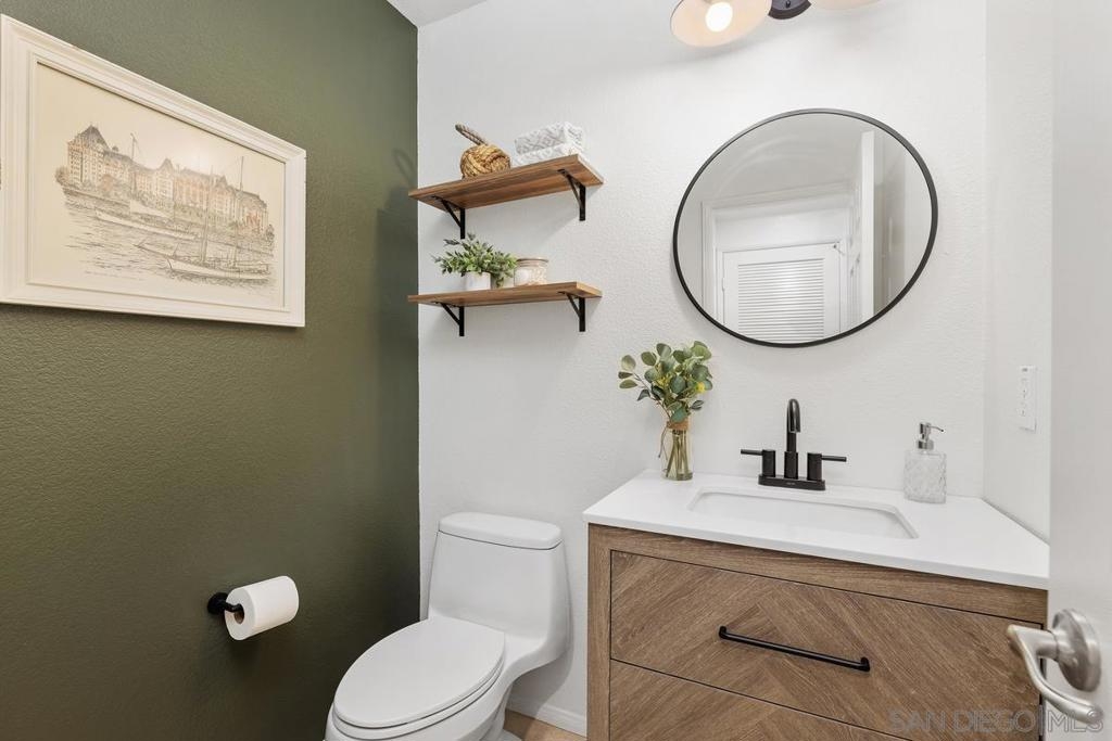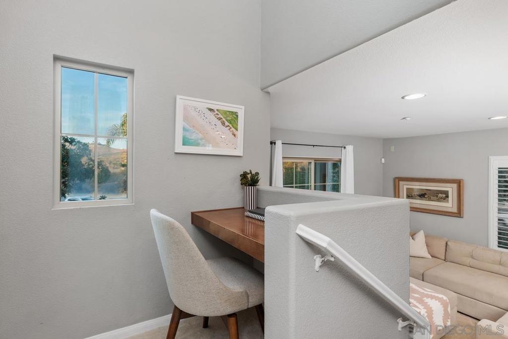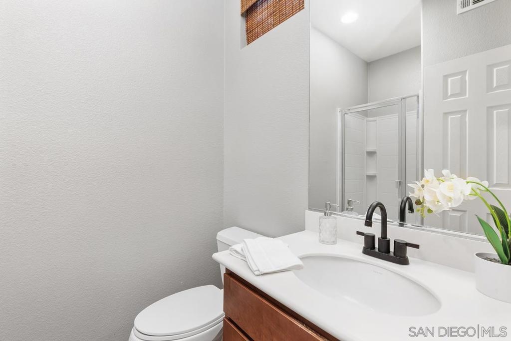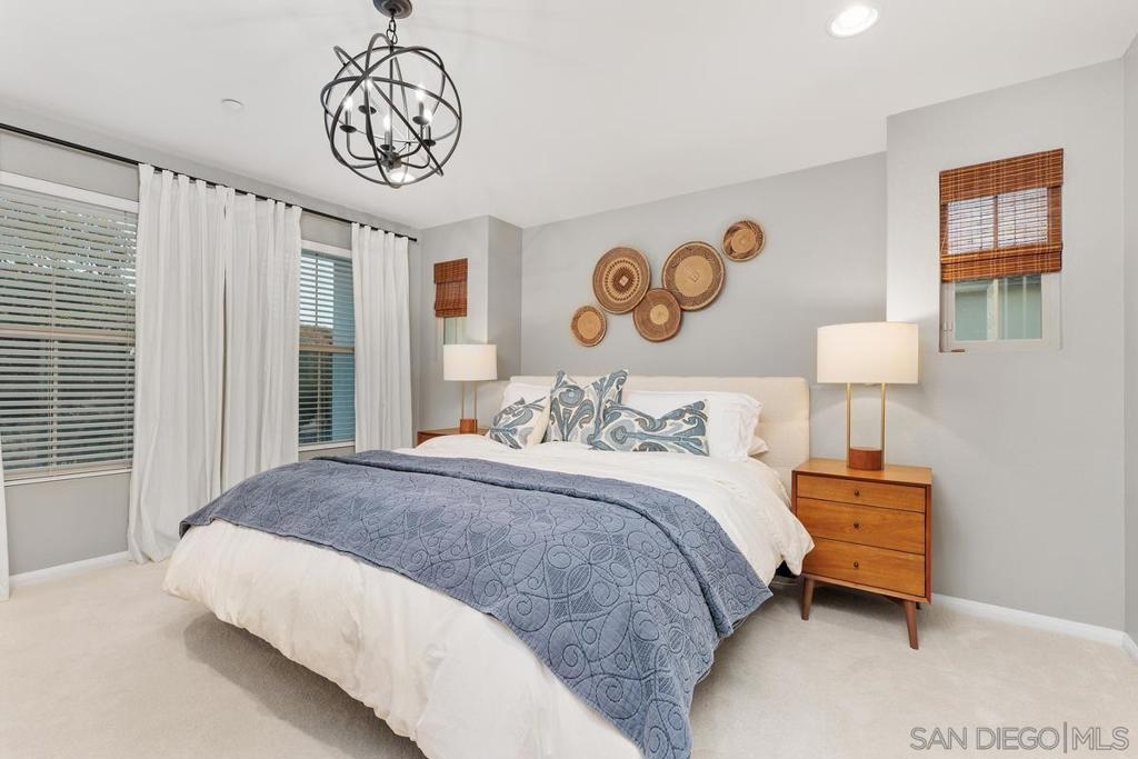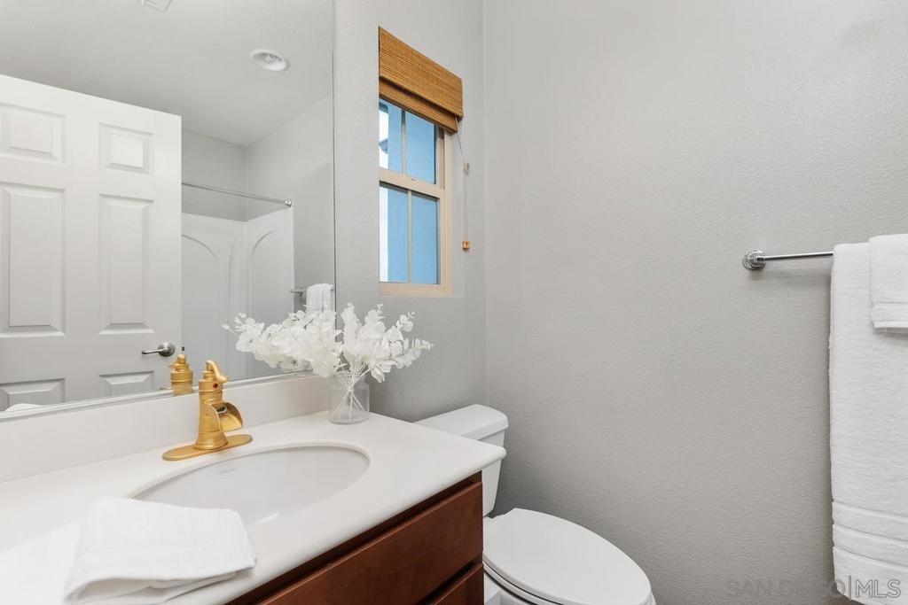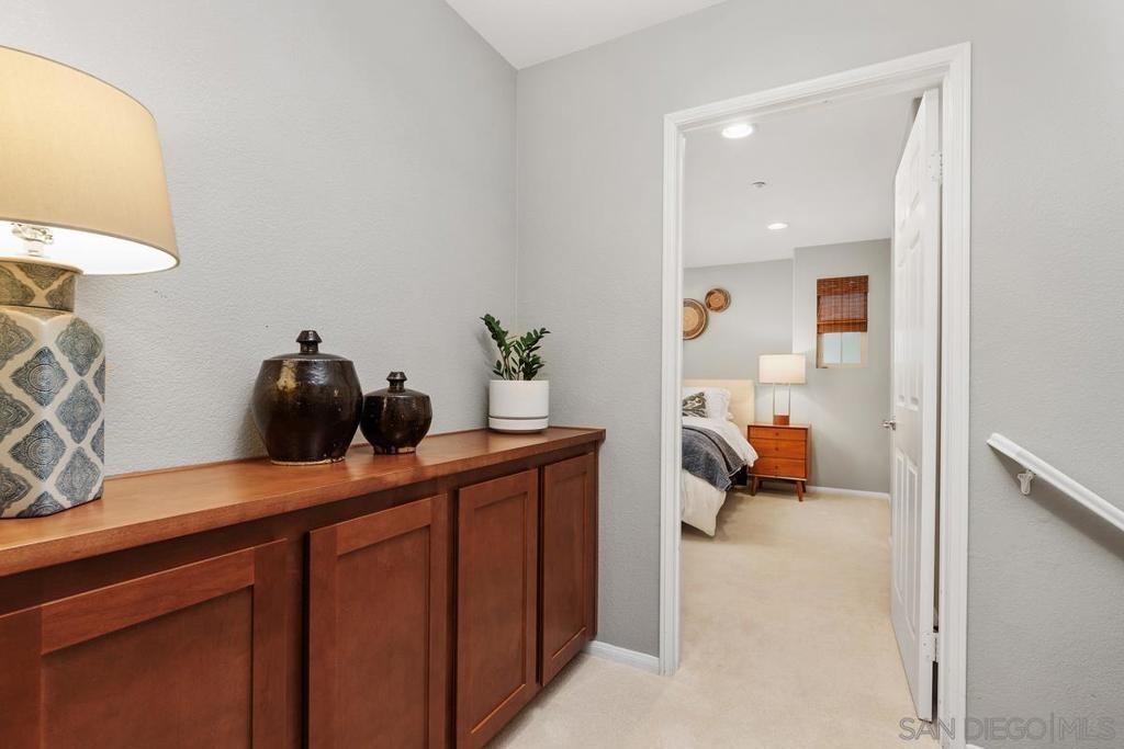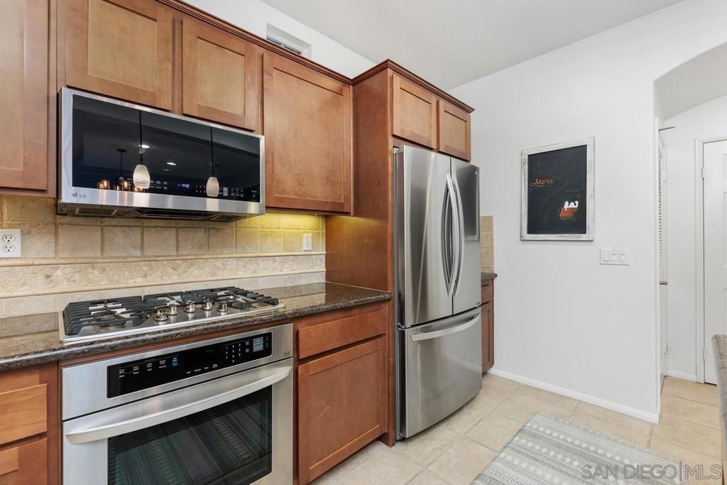 Nestled in the sought-after Larkspur Creek community of Old Creek Ranch, this exceptional 3-bedroom, 3.5-bath end unit townhome offers an unparalleled living experience just moments from Carlsbad. A unique feature of this remarkable property is the full bedroom and bathroom conveniently located on the entry level, providing ultimate flexibility for guests or multi-generational living. The home boasts a prime orientation, with stunning views overlooking the community pool area and distant mountains, creating a picturesque backdrop to daily life. See supplement! Nestled in the sought-after Larkspur Creek community of Old Creek Ranch, this exceptional 3-bedroom, 3.5-bath end unit townhome offers an unparalleled living experience just moments from Carlsbad. A unique feature of this remarkable property is the full bedroom and bathroom conveniently located on the entry level, providing ultimate flexibility for guests or multi-generational living. The home boasts a prime orientation, with stunning views overlooking the community pool area and distant mountains, creating a picturesque backdrop to daily life. Inside, soaring high ceilings and an open floor plan are bathed in natural light, creating an inviting and spacious atmosphere. The recently upgraded kitchen is a true showpiece, featuring a brand-new sink and microwave, granite countertops, a travertine backsplash, and a functional island. Top-tier appliances, including an LG dishwasher and refrigerator, complement the space's modern aesthetic. Thoughtful improvements are evident throughout, with new carpet, LVP flooring and designer light fixtures. The family room, anchored by a cozy fireplace and opening to a private balcony, provides a perfect space for relaxation while offering breathtaking mountain and pool area views. The master suite serves as a luxurious retreat, complete with a spacious walk-in closet and an elegant bathroom featuring dual sinks. Strategically located in a prime area, this townhome provides convenient access to Carlsbad's best amenities, including Alga Norte Park, local shopping, beaches, and LEGOLAND. Served by the excellent San Marcos Unified School District, this property represents the perfect blend of comfort, style, and location.
