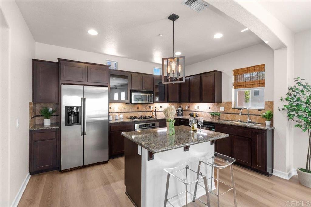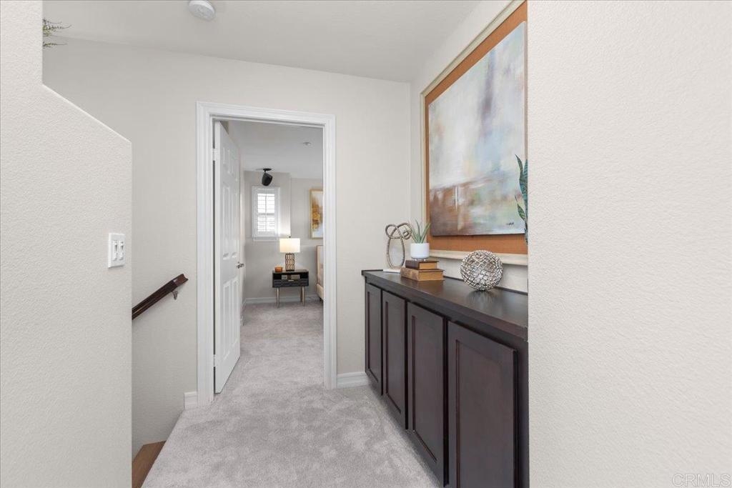 OPEN HOUSE CANCELLED, IN ESCROW. ABSOLUTE STUNNER! IN THE LARKSPUR CREEK NEIGHBORHOOD IN OLD CREEK RANCH, NEAR SAN ELIJO HILLS. New Flooring! New Paint! Gorgeous Designer Light Fixtures! 3 Ensuite Bedrooms, Each with Their Own Bath! Gourmet Kitchen! A Stunning Unit in a Great Neighborhood That You Do Not Want To Miss! This beautifully updated 3 bedroom, 3.5 bathroom townhome offers 1,560 square feet of stylish living space. Featuring 3 ensuite bedrooms (one on the 1st floor), plus an additional half bath providing comfort and privacy for all. The home boasts brand new gorgeous luxury laminate flooring throughout most of the unit, and new carpeting in 2 bedrooms, fresh interior paint, updated modern light fixtures and so much more. The inviting living room includes a cozy fireplace, built-in surround sound speakers, and direct access to a private balcony - perfect for relaxing or entertaining. The kitchen offers a center island, and has been tastefully upgraded with beautiful cabinets (refinished in 2024), elegant stone countertops, and stainless-steel appliances. Enjoy a laundry room with full size washer/dryer, fully equipped. The main floor ensuite adds convenience and flexibility to the floorplan. Enjoy the epoxy-coated 2 car garage, security system, A/C and access to community amenities like the sparkling pool. Just steps away from scenic hiking trails, this home offers the perfect blend of modern updates and outdoor lifestyle. Don’t miss this turnkey gem in a prime location! Enjoy the community amenities, including pool, spa, BBQ area, and nearby Old Creek Ranch playgrounds, parks, and trails. Located near the vibrant San Elijo Hills town center with shopping and restaurants, and just a short drive to the beautiful beaches and attractions of North County San Diego. This complex does NOT have the financing issues that many other complexes in the area have and can be financed with Fannie/Freddie Conventional Loans. Additional upgrades/updates: Ring Door Camera, August Electronic Remote Front Door Lock, Google Nest Smart Thermostat, Epoxy Garage Floor, Mounted Garage Wall Storage Racks, All new Bathroom Lighting, All New Hallway and Kitchen Island Lighting. Room dimensions & square footage are approximate, per builder & assessor's record. All MLS & marketing info is approximate & not guaranteed.
