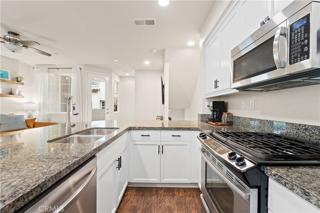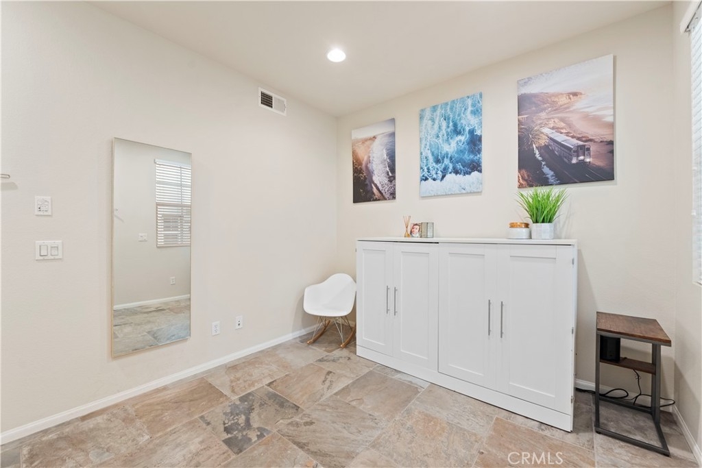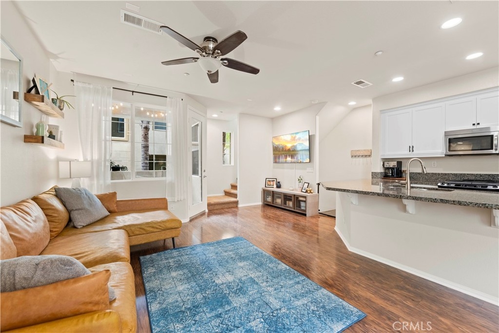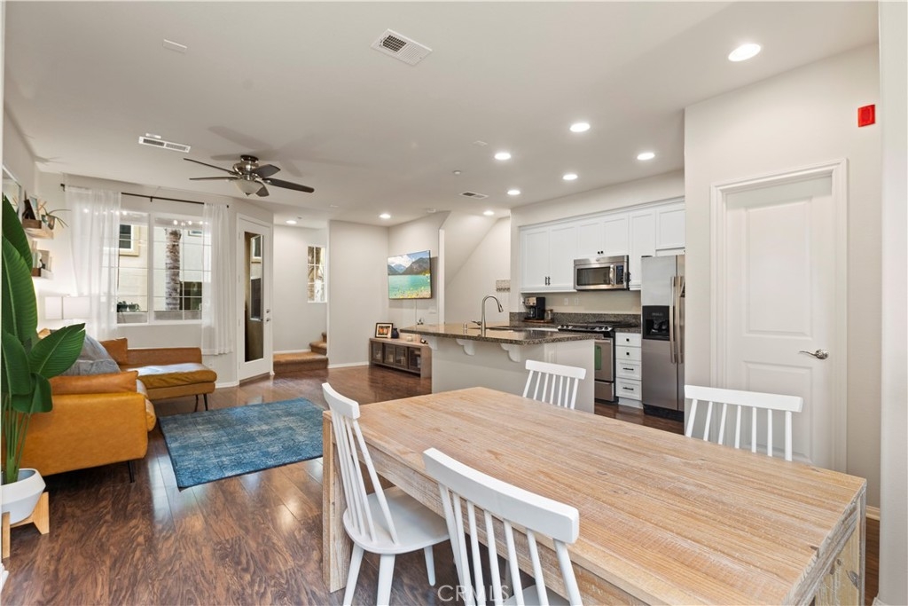 This Magnolia Townhouse is located within the Old Creek Rancho neighborhood of San Marcos that is near both Carlsbad and San Elijo. It is centrally located within this coveted community & is surrounded by lush, tropical landscaping. It is also a well maintained, ready for move in and has a ground floor oversized entry that can be used as a home office or perhaps even a gym. There are high ceilings, large windows and ceiling fans on each level that make it very bright & let in the cross breezes. The main living space on the 2nd floor is open to the kitchen & dining area & also has a half bathroom and a balcony. The cabinets have been professionally painted white and newer drawer pulls installed. Upgraded stainless appliances and granite countertops along with bar seating make it an ideal space for entertaining. Other upgrades include a "Ring" doorbell & also a "Google" thermostat. Each bedroom is a spacious ensuite with its own private full bathroom. The primary suite offers a large sized walk-in closet & dual sinks in the bathroom with upgraded cabinets, tile counters and a contemporary backsplash. You will find indoor laundry with stackable units on the third level conveniently located near the bedrooms. There is Berber carpet on the stairs and in the bedrooms while the kitchen, living and dining rooms have engineered wood like flooring. Homeowners will also love having direct access to an ample sized two car garage. The Magnolia community offers a beautiful pool and spa, lush grounds, grassy spaces, a BBQ area and playgrounds. It is ideally situated in North County to enjoy all of the amenities of the greater San Diego area including local hot spots like golf courses and resorts, beaches within 10 miles, recreational walking trails, Lego Land, San Elijo & award winning neighborhood schools!! Low taxes & low HOA! You will want to see this one!