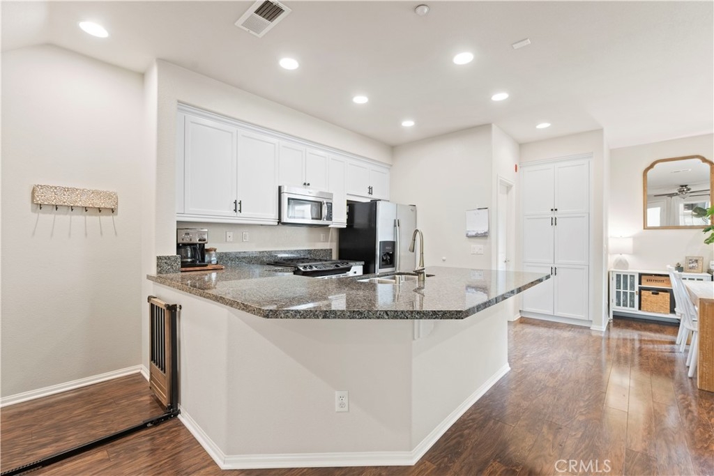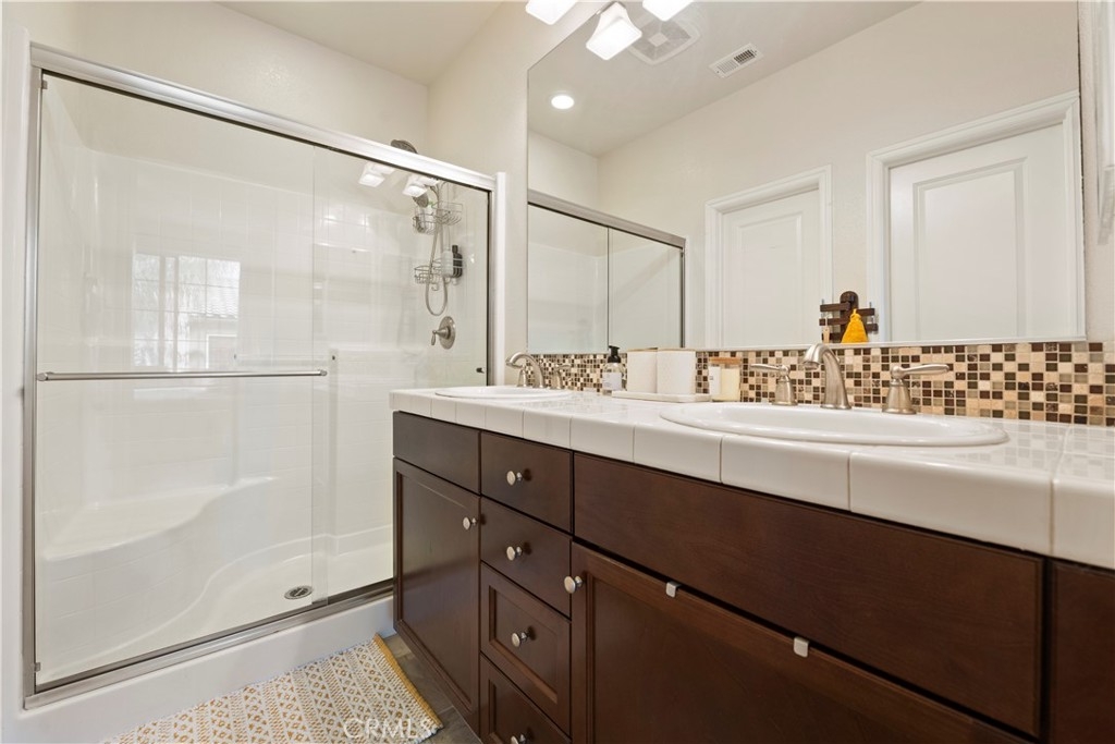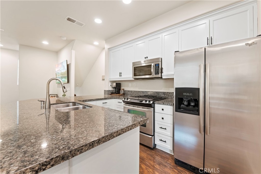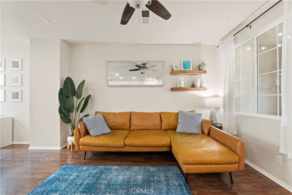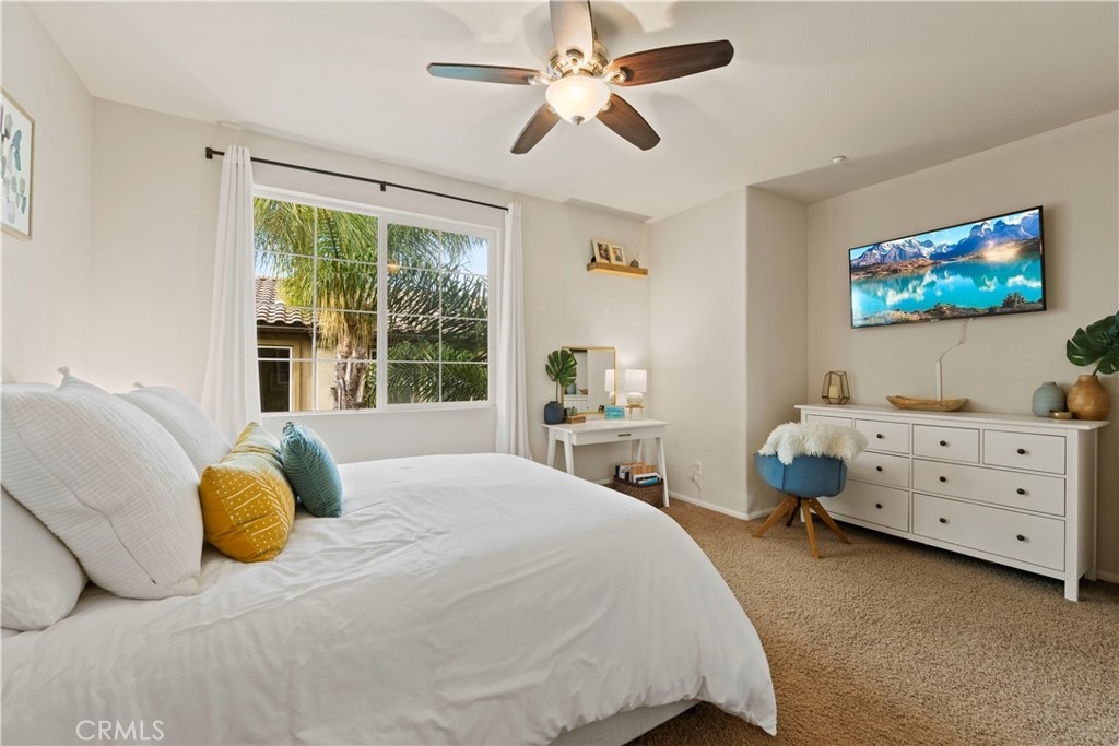 This Magnolia Townhouse is located within the Old Creek Rancho neighborhood of San Marcos that is near both Carlsbad and San Elijo. It is centrally located within this coveted community & is surrounded by lush, tropical landscaping. It is also a well maintained, ready for move in and has a ground floor oversized entry that can be used as a home office or perhaps even a gym. There are high ceilings, large windows and ceiling fans on each level that make it very bright & let in the cross breezes. The main living space on the 2nd floor is open to the kitchen & dining area & also has a half bathroom and a balcony. The cabinets have been professionally painted white and newer drawer pulls installed. Upgraded stainless appliances and granite countertops along with bar seating make it an ideal space for entertaining. Other upgrades include a "Ring" doorbell & also a "Google" thermostat. Each bedroom is a spacious ensuite with its own private full bathroom. The primary suite offers a large sized walk-in closet & dual sinks in the bathroom with upgraded cabinets, tile counters and a contemporary backsplash. You will find indoor laundry with stackable units on the third level conveniently located near the bedrooms. There is Berber carpet on the stairs and in the bedrooms while the kitchen, living and dining rooms have engineered wood like flooring. Homeowners will also love having direct access to an ample sized two car garage. The Magnolia community offers a beautiful pool and spa, lush grounds, grassy spaces, a BBQ area and playgrounds. It is ideally situated in North County to enjoy all of the amenities of the greater San Diego area including local hot spots like golf courses and resorts, beaches within 10 miles, recreational walking trails, Lego Land, San Elijo & award winning neighborhood schools!! Low taxes & low HOA! You will want to see this one!