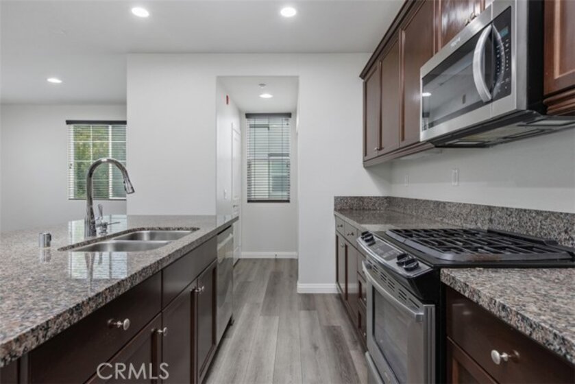 Wonderful opportunity to own a spacious end-unit townhome in the highly sought-after Magnolia at Old Creek Ranch. This three-story floor plan offers privacy with only one shared wall, an attached 2-car garage, and a location close to the pool yet nicely tucked away. The entry level features a flexible bonus room with a half bath, ideal for a guest suite, home office, gym, or private retreat separate from the main living areas. The main living level showcases an open, airy layout with a gourmet kitchen featuring granite countertops, stainless steel appliances, tile backsplash, a large center island with bar seating, and a walk-in pantry. The spacious living room is filled with natural light and opens to a dedicated dining area. The entire level offers wood laminate flooring, a half bath, closet laundry with full-size washer and dryer, and a private balcony—perfect for morning coffee or grilling. Upstairs, the primary suite includes a well-appointed bath with dual sinks, tile backsplash, separate tub and shower, and a walk-in closet with ample storage. Two secondary bedrooms share a Jack-and-Jill bathroom, with ceiling fans and pull-down shades in all bedrooms. Additional highlights include an oversized 2-car garage with easy alley access. Magnolia residents enjoy resort-style amenities including a pool, spa, BBQ area with multiple grills and covered seating, tot lot, and nearby hiking and biking trails. Ideally located in San Marcos, offering award-winning schools, abundant shopping and dining, easy freeway access, and just 20 minutes to the beach.