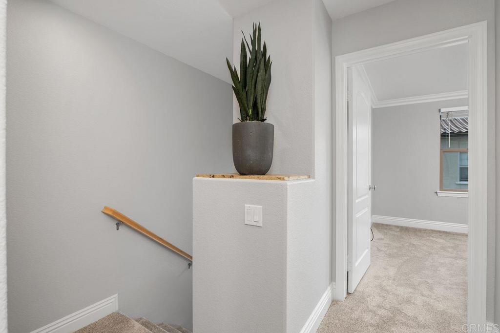 Welcome to 298 Marquette! This gorgeous townhome has been newly updated top to bottom and shows true pride of ownership. Located in the Madiera at Coronado Ranch development, this property is gated and located close to CSUSM. The trilevel home features two primary suites with ensuite bathrooms on the upper level with the living spaces located on the middle level. This level also includes the laundry closet and a half bath. The kitchen and dining area as well as the living room have all new waterproof vinyl laminate flooring. The kitchen cabinets have been updated as well with paint and new hardware. All carpet has been replaced throughout the home and the entire home has been painted inside as well as in the garage. The lower level features a room that could be used as an office space, art studio, or bonus room, and was used as a bedroom by previous tenants with an added wardrobe. This room also has a small outdoor patio space attached to it as well. This townhome has an attached two car garage with ample storage. The community features a beautiful swimming pool and spa, lots of outdoor recreation space to include BBQ areas, picnic areas, and playground. There is a clubhouse that has a gym and library space as well. The neighborhood is located in a wonderful area of San Marcos, close to many shops, restaurants and with easy access to I-78. Don't wait to make this your new home!