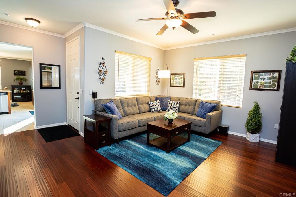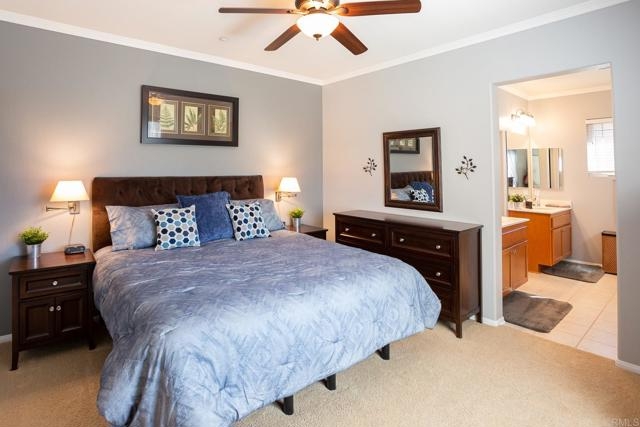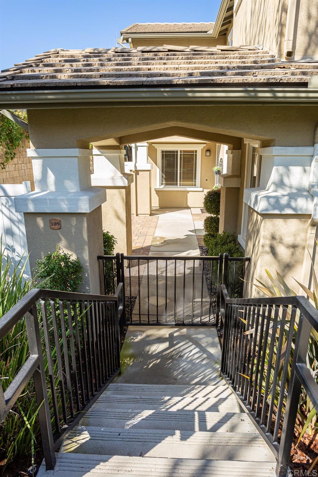 This very private, upgraded townhome is located in the Carriage Walk Community with the largest gated courtyard in the complex which is finished with brick and low maintenance landscaping. The remodeled kitchen features granite countertops, travertine back-splash, tile floors, stainless steel appliances, and a breakfast bar. Additional features of this lovely home are 9' ceilings, a custom made retractable screen door, crown moulding throughout, ceiling fans in every room, built-in entertainment center in the living room with a gas fireplace and wood floors, air conditioning and a 2-car attached garage with storage. Close to CSUSM, Palomar College, the Sprinter, Twin Oaks Golf Course, Palomar Medical center, shopping, walking trails, and easy access to the 78 freeway.