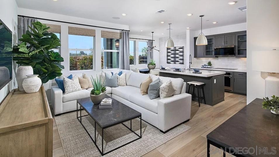 This new two-story home features a modern and spacious layout. On the first level, an inviting open floorplan combines the kitchen with the living and dining areas. Three bedrooms can be found upstairs, including the luxe owner’s suite, complete with a private bathroom and generous walk-in closet. Guest parking close by. Radius is a new collection of attached homes now selling at the master-planned community of The Hill District in San Marcos, CA. Homeowners will enjoy access to great future amenities, such as a recreation center, sparkling swimming pool, parks and trails. It also enjoys a great north county location close to freeways for easy commutes, local shops, eateries and entertainment.