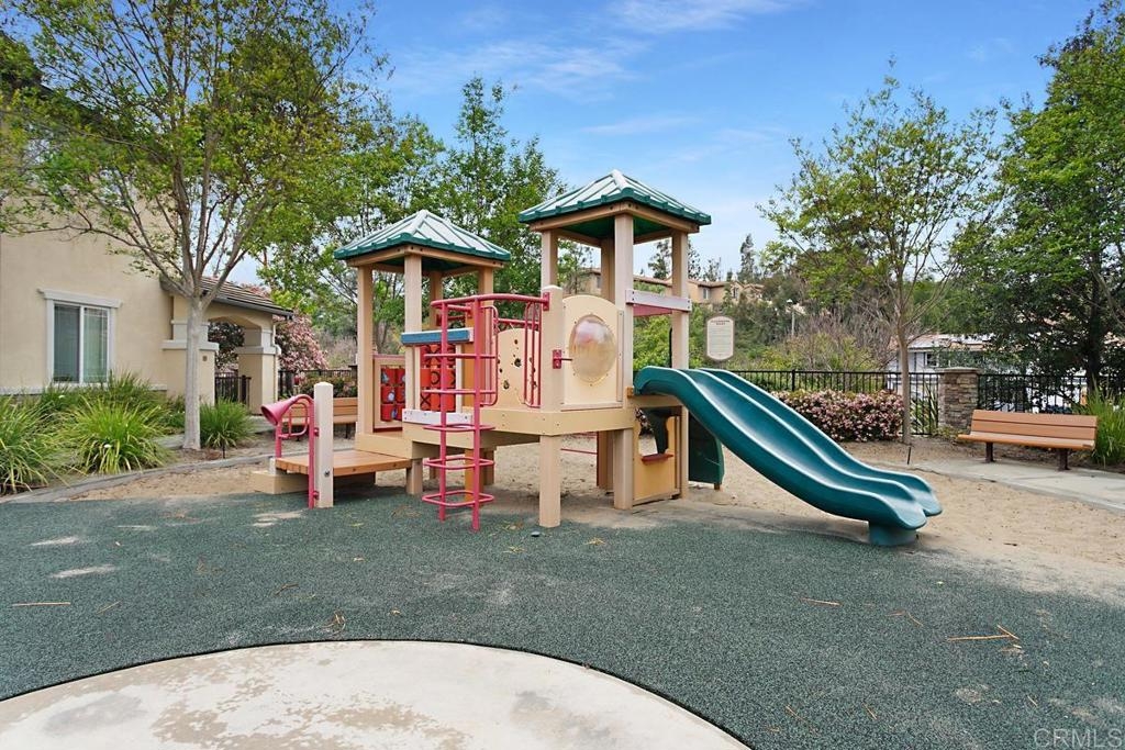 MOVE IN READY and SO LOVED!! Immaculate, END UNIT, open-concept townhome featuring 2 bedrooms, 2 full baths with attached 2 car garage! Perfect fit for first time home buyer, investment (walking distance to St. Augustine, minutes to CSUSM and Palomar College) or right sizing. Beautifully appointed with real wood flooring, Plantation Shutters, and many updates. Spacious family room is adorned with wainscoting and an abundance of windows to enjoy greenery and open feel. Spacious, remodeled kitchen featuring Leathered Quartzite countertops and island, full tile backsplash, Shaker Cabinetry, Stainless steel appliances, farmhouse sink, recessed and under cabinet lighting. Relax and unwind on your private Balcony which offers southwesterly breezes and sunsets with views of mature trees and hills. Primary Suite is spacious with gorgeous bathroom and walk-in mirrored closet. Secondary bedroom features mirrored closet doors and is located across from a beautifully updated bathroom. Laundry is in the unit near bedrooms! New A/C (2022) and ceiling fans in the living room and both bedrooms. Carriage Walk Community is located in a prime location and offers ample guest parking, tot lot and walking trails maintained by the City of San Marcos. Close to freeways, shopping, parks, top rated schools and Twin Oaks Golf Course. A must see!