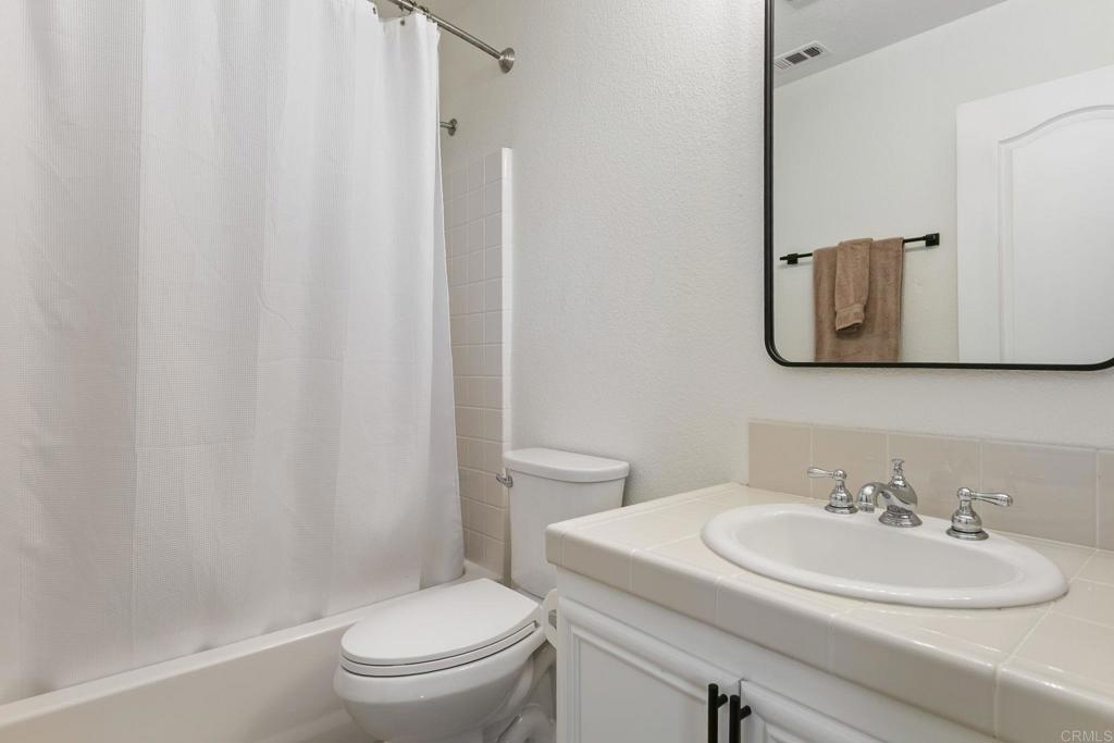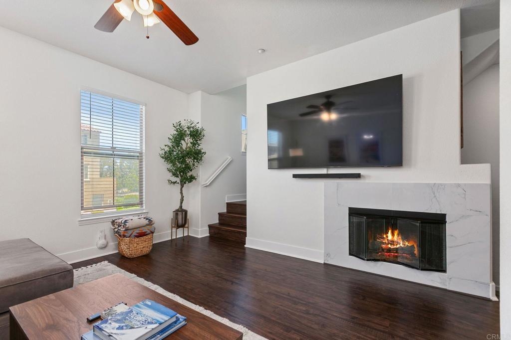 Located just one mile from Cal State San Marcos, this beautifully remodeled tri-level townhome offers the perfect blend of convenience, comfort, and value. With low Mello-Roos and HOA fees, it’s an excellent opportunity for both homeowners and investors alike. The home features three bedrooms and two and a half bathrooms, including a spacious primary suite with an ensuite bathroom. The versatile entry-level room functions perfectly as a third bedroom, office, or additional living space and opens to a private patio. The open-concept main floor includes a modern kitchen, living area, laundry, and a convenient half bath, creating a layout ideal for everyday living and entertaining. Interior upgrades include quartz countertops, updated cabinetry, newer stainless steel appliances, and an in-unit washer and dryer. Luxury vinyl plank flooring runs throughout the home, complemented by modern baseboards and a freshly painted interior in neutral tones. A gas fireplace with a quartz surround adds a touch of warmth and elegance. The attached two-car garage features epoxy flooring and a new garage door opener, while the private patio offers a great space for seating and barbecuing. The home is just steps away from a wide array of community amenities, including a pool, hot tub, gym, BBQ area, tot lot, dog park, and more—all within a gated and guarded community. This prime location offers easy access to CSUSM, medical centers, shopping, restaurants, and major freeways. Whether you're seeking a move-in-ready residence or a high-potential rental, this townhome delivers on all fronts and is VA approved.