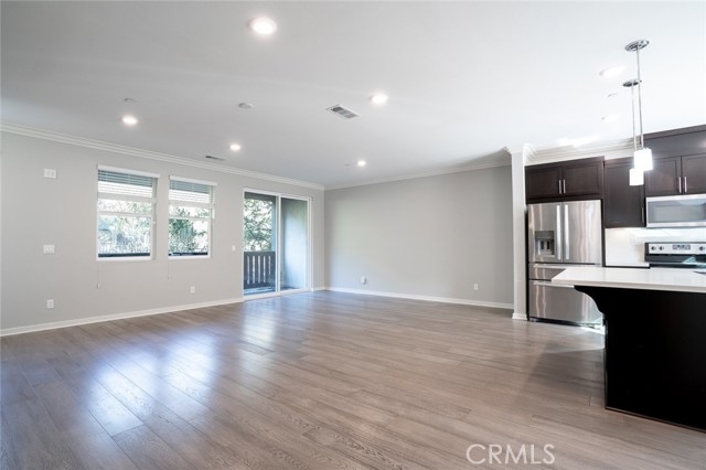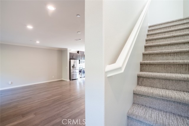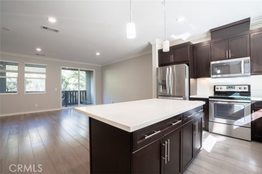 Beautifully upgraded 3-bedroom, 3-bath, tri-level condo located in San Marcos. This home offers PAID SOLAR, a whole-house fan, and an eco-smart thermostat with the ability to control the home’s temperature and water heater from your phone. The second-floor main living area features a full kitchen with a center island, quartz countertops, included appliances (refrigerator, range, microwave, dishwasher, washer, and dryer), a spacious living area, a storage closet, a half bathroom, and access to a private balcony. The layout provides an efficient separation of living, dining, and bedroom spaces across all three levels. Abundant natural light enhances the home’s clean, modern feel. The third floor includes all three bedrooms, a laundry area, and an additional storage closet. Two bedrooms feature mirrored closet doors, while the primary suite offers a walk-in closet. Electrical outlets with built-in USB ports are installed in the kitchen, living area, and all bedrooms. Interior highlights include crown molding, recessed lighting, hardwood flooring, and new carpet on the stairs. Additional features include an attached 2-car garage, which includes an overhead storage rack as well as a standing storage rack for added organization. The community offers two BBQ and picnic areas and a playground. Convenient location near shopping, dining, and freeway access.