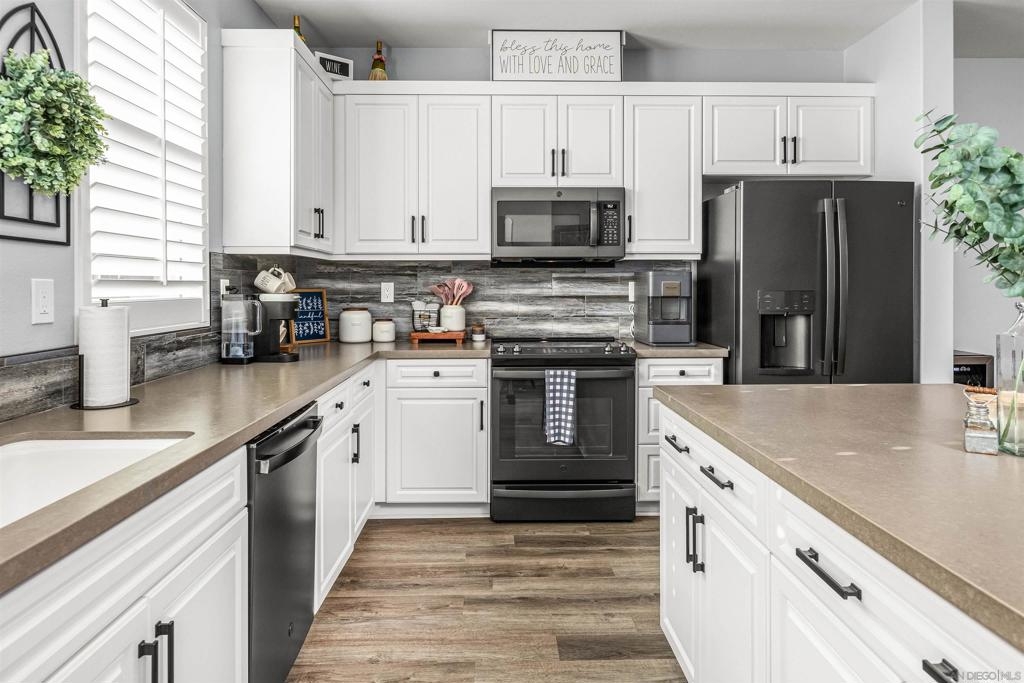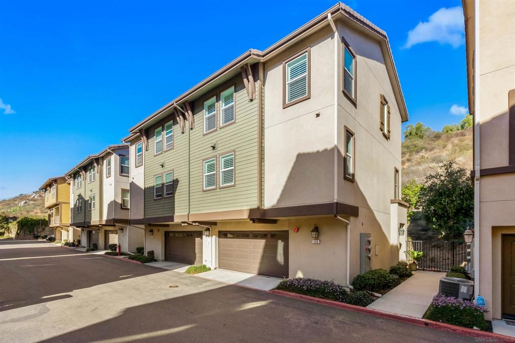This beautiful end-unit townhome in the sought-after Mission 316 community offers an unbeatable hilltop location with stunning views and exceptional privacy. With only one shared wall and an elevated setting, this home provides a tranquil retreat while remaining just minutes from shopping, dining, the 78 freeway, and the train station—without the noise! Built in 2017, this modern 3-story townhome features a bright, open layout designed for both comfortable living and entertaining. Recent upgrades include a renovated kitchen, remodeled bathrooms, and new flooring throughout. The second floor boasts a spacious family room, dining area, updated kitchen, half bath, and a private balcony with scenic views. The third floor offers a serene primary suite, two additional bedrooms, a full bath, and a conveniently located laundry area. Additional features include an oversized two-car garage with ample storage, Energy Star appliances, solar panels for energy efficiency, and prewiring for Ethernet and cable. Mission 316 is VA and FHA approved, making it a fantastic option for a variety of buyers. Residents enjoy great community amenities, including a playground, BBQ, and picnic area. With one of the best locations in the complex—perched at the top of the hill for added privacy and breathtaking views—this home is a must-see!