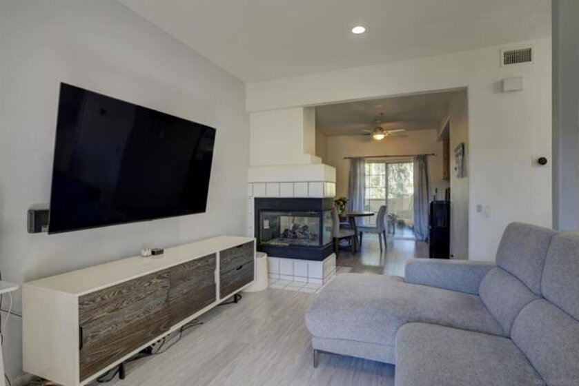 This home is ready to sell and VALUE PRICED for today’s market. Enjoy beautiful flooring, recessed lighting, ceiling fans in bedroom(s), lighting throughout, and a unique fireplace facing both the dining and living rooms. The home features three balconies (plus a patio) with incredible views of trees, clouds, sun, and surrounding mountains, perfect for relaxing or daydreaming. The kitchen offers ample cabinet space, and the attached garage (with a convenient driveway spot up front) includes a washer and dryer for added convenience. VA and FHA approved. Come take a look—you won’t want to miss this one. Located in the gated community of Villa Aspara, residents enjoy a community swimming pool and two spacious courtyards with water fountain features. Conveniently situated near schools, shopping, and restaurants, with easy access right off Hwy 78.