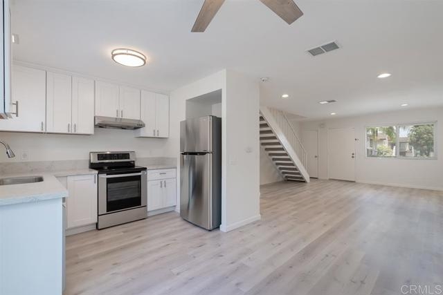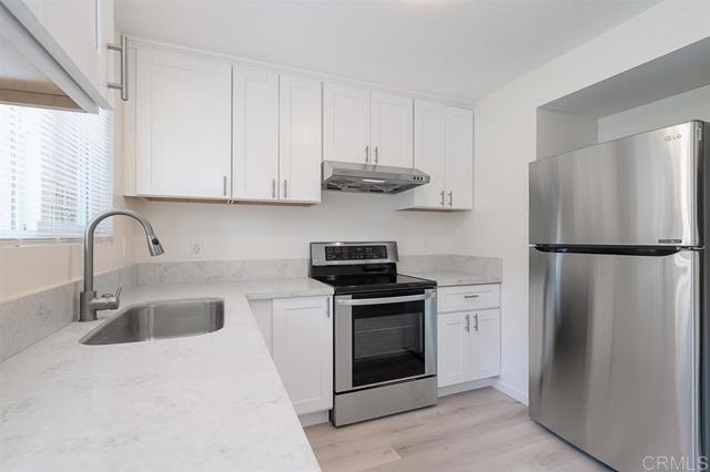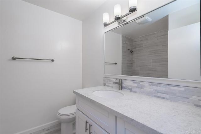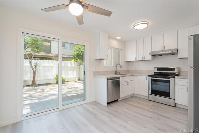 Bright and airy "Corner Unit" with its own private backyard patio, COMPLETELY REMODELED with brand new waterproof vinyl floors,carpet,fresh paint throughout, NEW FURNACE and Air Conditioning, LED recessed ceiling lights! New dual pain vinyl windows throughout, new toilets, cabinets, Stone counter tops and bathrooms. New Stainless Steel LG appliances with 2 parking spaces. Amazing location,minutes to San Marcos High School,High Tech High, La Mirada Academy, shopping, fwys.