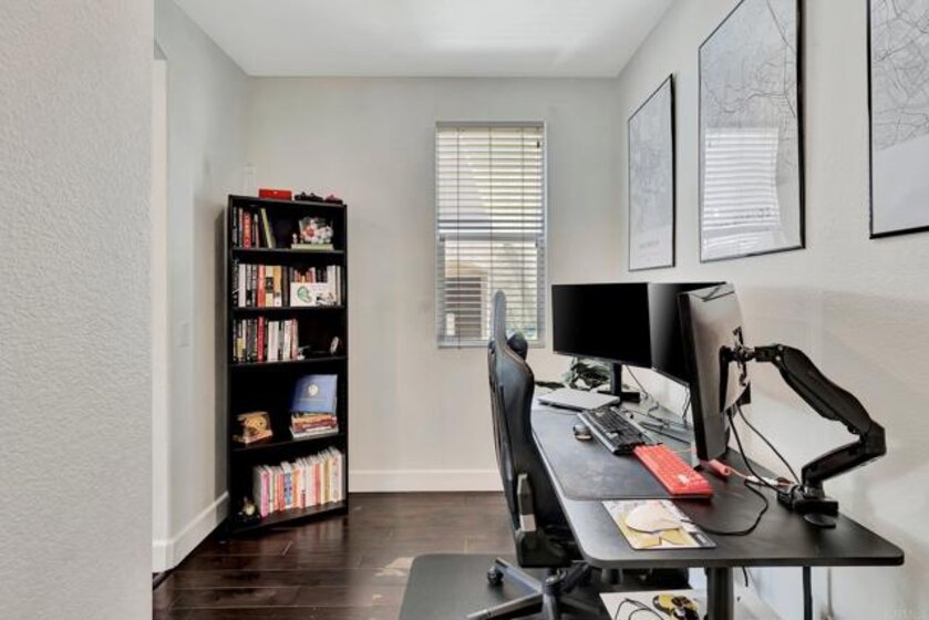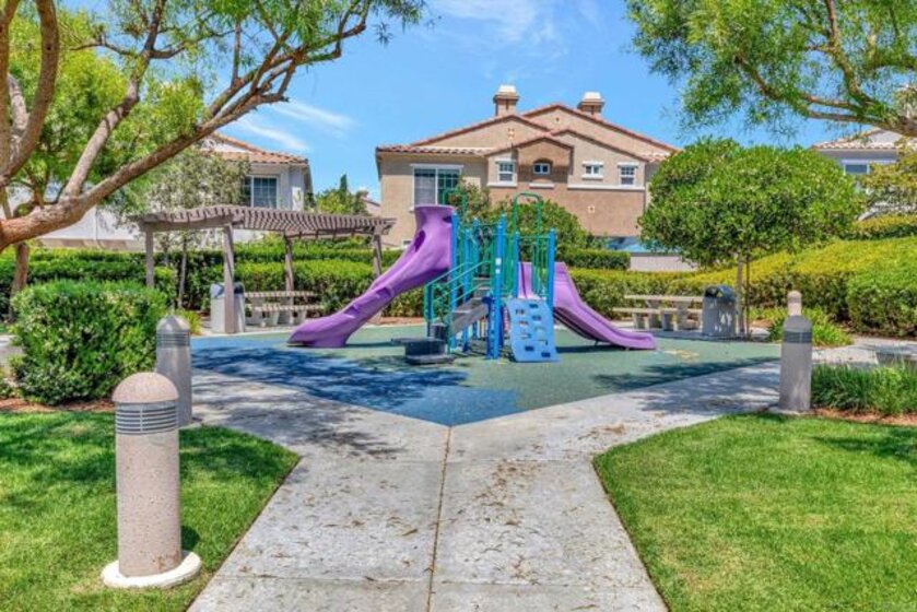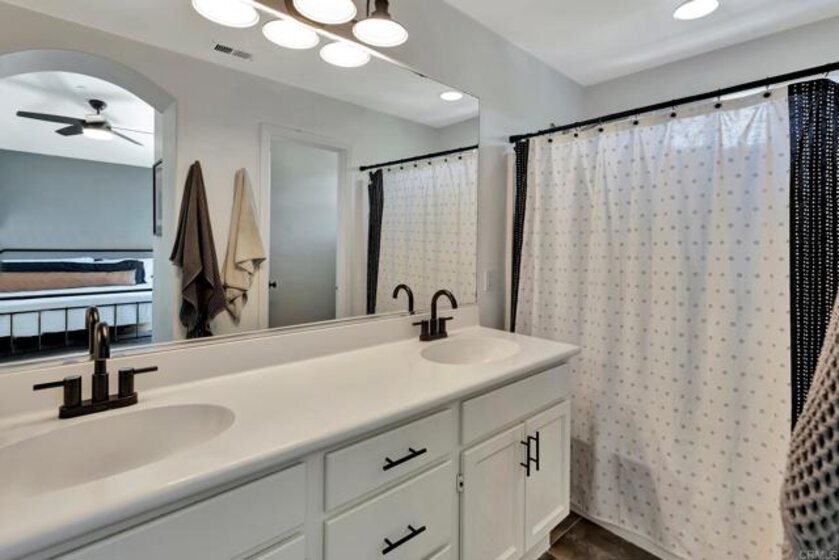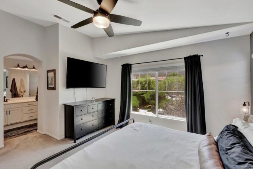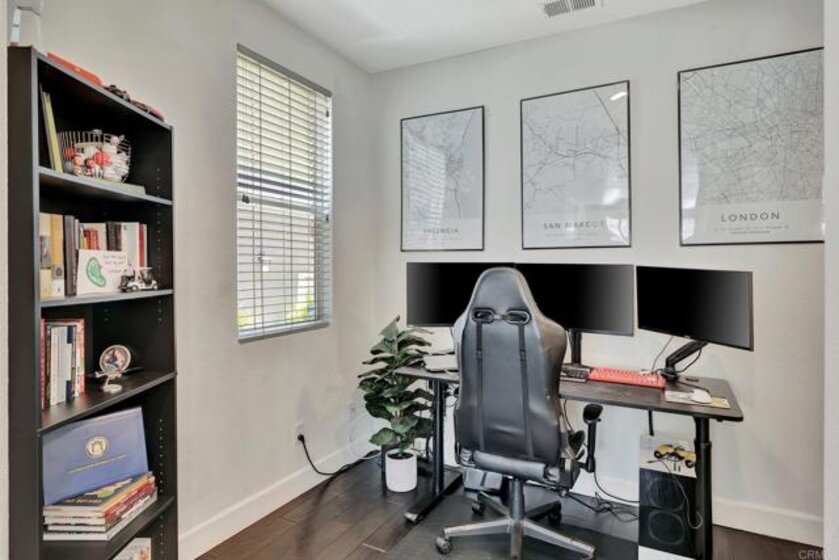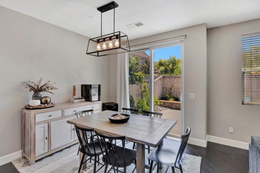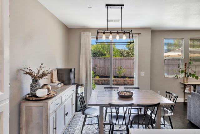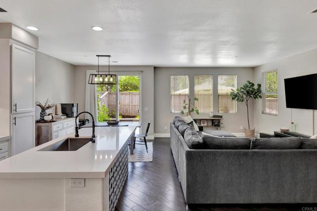 Experience the best of San Marcos living in this beautifully maintained townhome, the largest model within the gated community of Campana at Rancho Coronado. Offering 1459 SqFt, 3 bedrooms, 2.5 baths, plus an office/bonus space, this private end-unit home enjoys mountain views and exceptional privacy inside and out, with no neighbors behind. The open-concept main level features engineered wood floors, a remodeled kitchen with stainless steel appliances, and a large island with quartz countertops, a spacious living room, and a dining room with sliding doors that open to a sunny private backyard patio — perfect for outdoor living and entertaining. Three bedrooms can be found upstairs, including the sun-drenched primary suite with vaulted ceilings, a walk-in closet and a spacious en-suite bathroom. Two secondary bedrooms share a full bath in the hallway as well. Additional highlights include a flexible office/den on the main level, a half-bath/powder room, and an attached 2-car garage with side-by-side laundry. Additionally, the VA-approved Campana complex offers a heated pool and spa, two playgrounds, a dog park, guest parking, and access to scenic hiking trails. Offering a coveted location on the quiet side of this gated community and close proximity to CSU San Marcos, shopping, dining, highly-rated schools, and major freeways, this home presents exceptional value whether you’re looking for a primary residence or an investment opportunity.