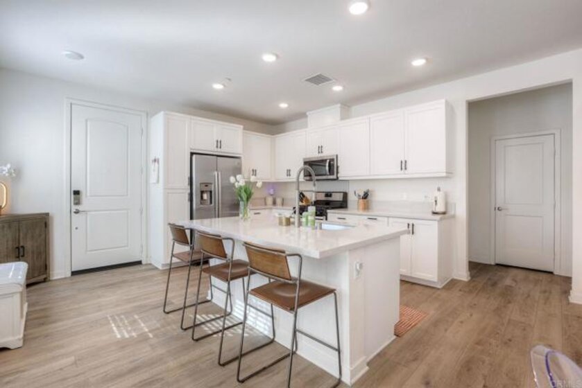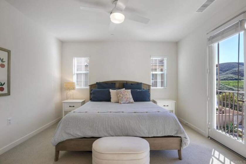 Better-than-new 3-bedroom end unit in popular Skyhaus at Rancho Tesoso. Lives like a detached home with large wraparound yard and terrific privacy. Premium perimeter lot with PANORAMIC views - arguably one of the best locations in the neighborhood. Great room concept downstairs with open island kitchen. Convenient upstairs laundry room, central air conditioning, attached 2-car garage. Skyhaus is a gated community located on a hilltop surrounded by acres of open space and miles of scenic trails. Skyhaus homeowners enjoy access to a private recreation center with a pool, fire pit, and barbecue pavilion. This rarely available plan is the largest in Skyhaus. One would be hard-pressed to find a better view at this price point! Conveniently located between San Elijo Hills and CSUSM. This home is move-in ready!