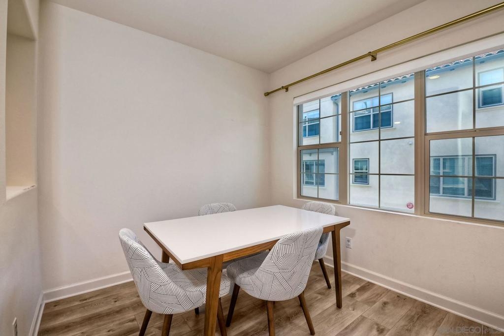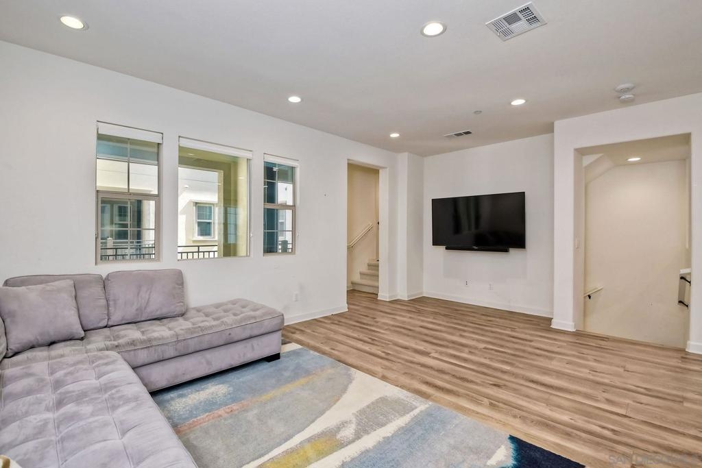 Beautifully appointed Latitude townhome in the prestigious gated community of Rancho Tesoro! Showcasing sleek finishes and a thoughtfully designed open floor plan, this beautiful 3-bedroom, 2 1/2-bath residence embodies the best of Southern California living. A charming patio entry welcomes you into the home, leading upstairs to a bright and airy main living level where the open-concept design seamlessly connects the kitchen and living areas. The contemporary kitchen serves as the heart of the home, featuring quartz countertops, subway tile backsplash, and newer stainless steel appliances. The light-filled living room offers the perfect setting for both relaxed everyday living and stylish entertaining, complete with a spacious private balcony. All bedrooms feature custom roller shades and designer light fixtures, adding a refined touch throughout. The primary suite boasts a spa-inspired ensuite bath with quartz countertops, dual vanities, an oversized walk-in closet, and a walk-in shower. Additional highlights include an attached two-car garage and a tankless water heater for added efficiency. Residents of this highly sought-after master-planned community enjoy resort-style amenities including a pool and spa, playgrounds, BBQ areas, and expansive green spaces. Ideally located near San Elijo Hills, Double Peak Park, and Lake San Marcos, with close proximity to top-rated San Marcos schools, Cal State San Marcos (CSUSM), premier shopping and dining, and convenient freeway access. This is more than a home — it’s a lifestyle.