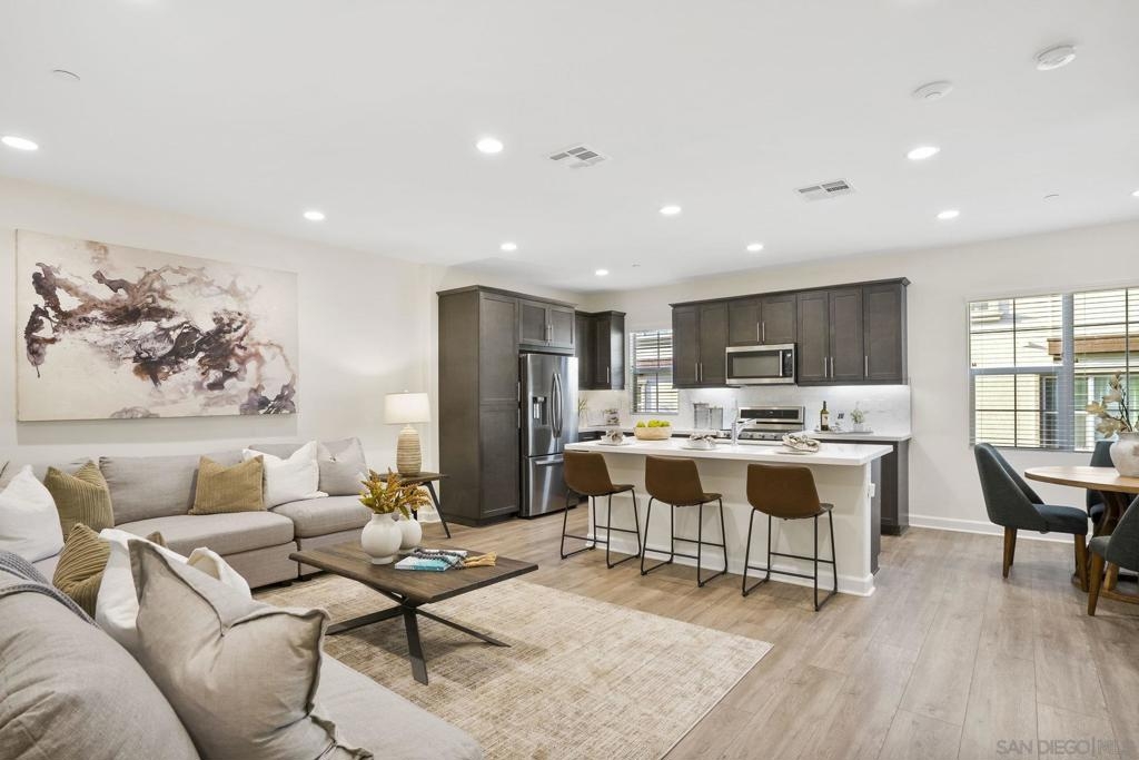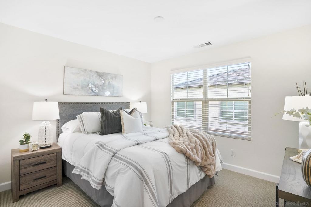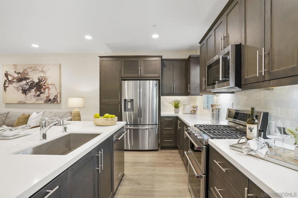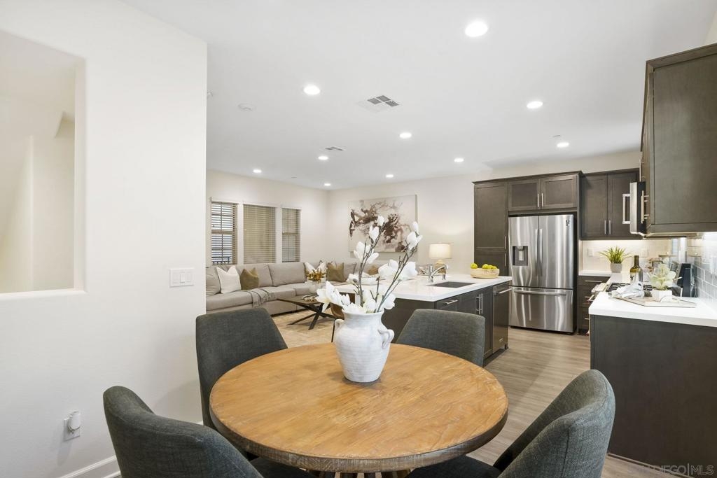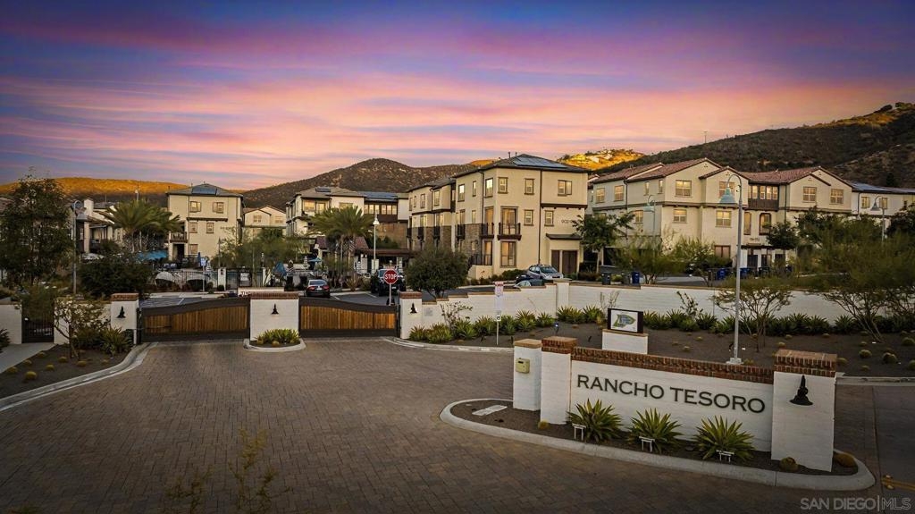Welcome to this gorgeous townhome with owned solar and upgrades throughout in the gated, resort-style community of Latitude at Rancho Tesoro (and it’s FHA and VA approved!). The scenic community offers fabulous entertaining spaces, including a pool, BBQs and parks, and the home is assigned to sought-after Double Peak School. Built in 2021, this smart-enabled home features an attached, epoxied 2-car garage, upgraded kitchen backsplash and countertops, upgraded flooring and fresh paint throughout, fiber connectivity, and optional EV charger. As you enter the courtyard-located home with 3 bedrooms, 2.5 bathrooms, and 1532 ESF, the first level offers access to the spacious garage with extra storage space, and then welcomes you up to the main living floor. Flooded with natural light, the open floor plan flows seamlessly between the dining, living, and kitchen areas. The inviting kitchen boasts an oversized island, beautiful tile, upgraded countertop, and ample storage. Just off the kitchen and living room, enjoy a sizable covered balcony that allows for easy indoor-outdoor entertaining. On the upper level are all 3 bedrooms, 2 bathrooms, and conveniently located laundry. The spacious primary suite features a large walk-in closet and dual vanity with upgraded countertop. Conveniently located with quick access to trails, lakes, and shops, this property offers a fantastic mix of new amenities and outdoor accessibility. Living in picturesque Rancho Tesoro has so much to offer, and this dream house is ready to welcome you home!