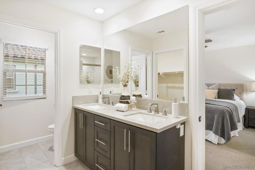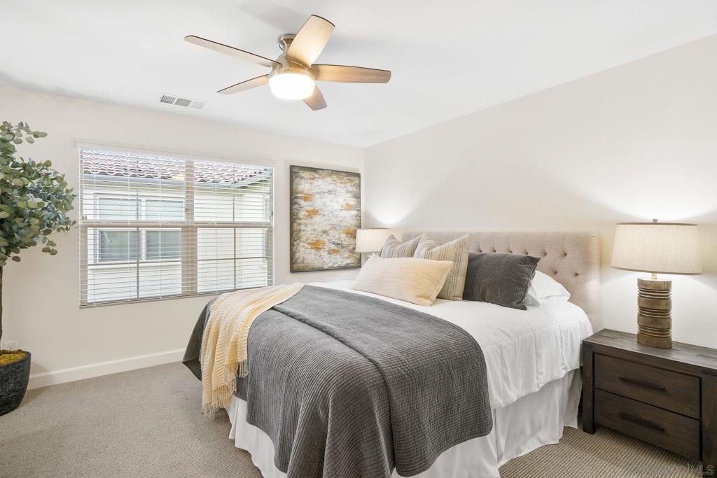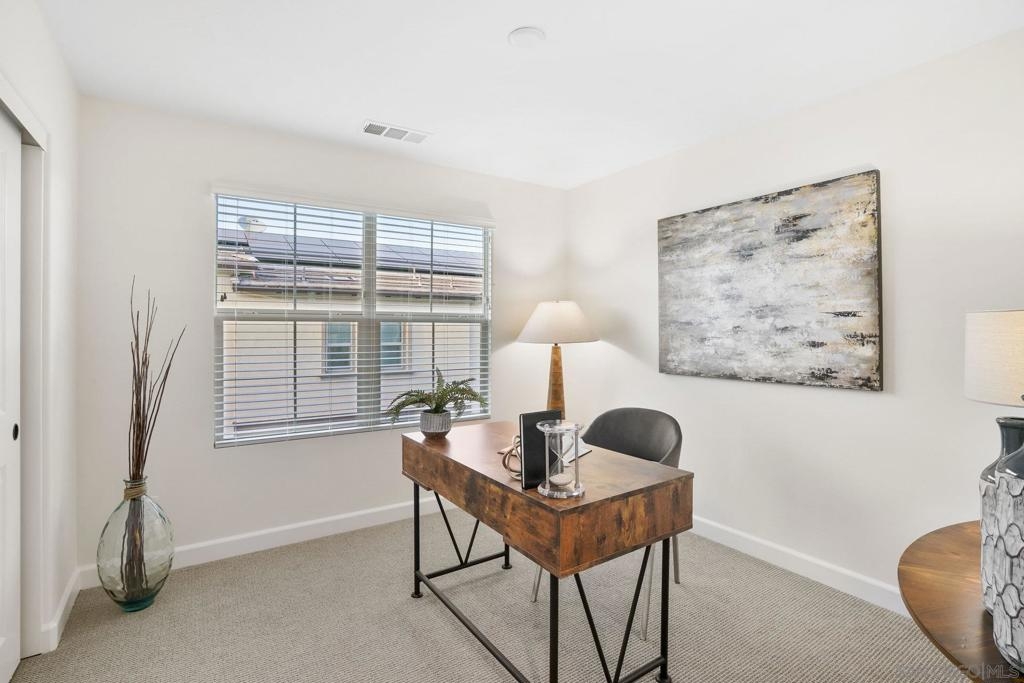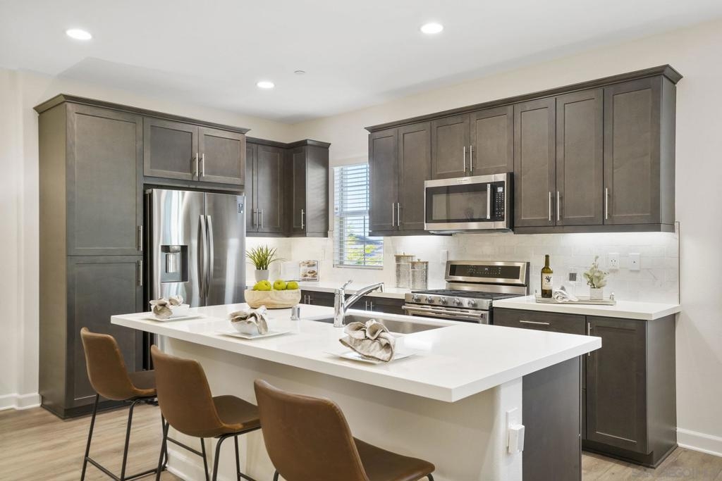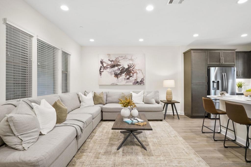 Welcome to this gorgeous townhome with owned solar and upgrades throughout in the gated, resort-style community of Latitude at Rancho Tesoro (and it’s FHA and VA approved!). The scenic community offers fabulous entertaining spaces, including a pool, BBQs and parks, and the home is assigned to sought-after Double Peak School. Built in 2021, this smart-enabled home features an attached, epoxied 2-car garage, upgraded kitchen backsplash and countertops, upgraded flooring and fresh paint throughout, fiber connectivity, and optional EV charger. As you enter the courtyard-located home with 3 bedrooms, 2.5 bathrooms, and 1532 ESF, the first level offers access to the spacious garage with extra storage space, and then welcomes you up to the main living floor. Flooded with natural light, the open floor plan flows seamlessly between the dining, living, and kitchen areas. The inviting kitchen boasts an oversized island, beautiful tile, upgraded countertop, and ample storage. Just off the kitchen and living room, enjoy a sizable covered balcony that allows for easy indoor-outdoor entertaining. On the upper level are all 3 bedrooms, 2 bathrooms, and conveniently located laundry. The spacious primary suite features a large walk-in closet and dual vanity with upgraded countertop. Conveniently located with quick access to trails, lakes, and shops, this property offers a fantastic mix of new amenities and outdoor accessibility. Living in picturesque Rancho Tesoro has so much to offer, and this dream house is ready to welcome you home!